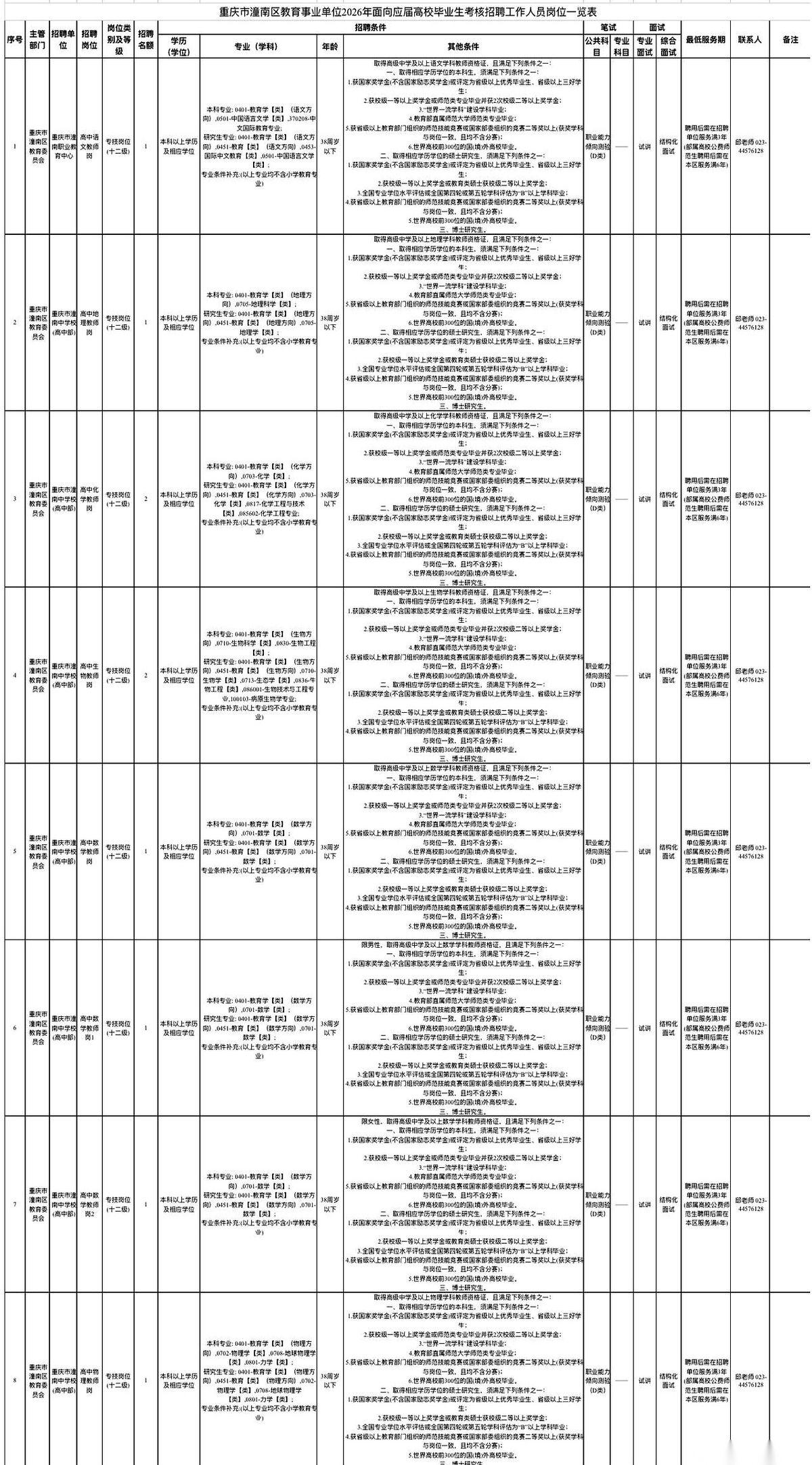 重庆潼南给教育系统“招兵买马”了,目标直指2026届毕业生。 这次一共放出30个名额,分摊在28个岗位里。最让人移不开眼的,是公告上那四个字:全部有编。这不是那种临时过度的合同工,而是实打实的教育事业编制。 报名时间卡得很紧,从2026年5月7日早上9点开始,到12号早上9点就截止,满打满算也就5天时间。 最硬核的规则藏在招聘细节里。这次走的是“考核招聘”的路子,专门面向应届生。这意味着,一部分符合条件的岗位可以直接跳过漫长的笔试备考,通过考核就能拿下一张入职门票。 看着那张长长的岗位表,最抢眼的不是学校的名字,而是那一排排“免笔试”的标注。只要你是2026年的应届生,专业对口,学历和资格证能对得上号,入编的路径被直接缩短到了最短。 对于还没走出校门的2026届同学来说,这不仅仅是一份工作的机会,更是一次提前落地的安全感。当别人还在为考公考编翻烂习题册时,这批人已经盯上了潼南递过来的“橄榄枝”。 机会就摆在5月的那5天里,是打算提前锁定这份“铁饭碗”,还是等毕业了再去人堆里挤?这种免笔试的入编机会,真的会让很多还在观望的人坐不住。