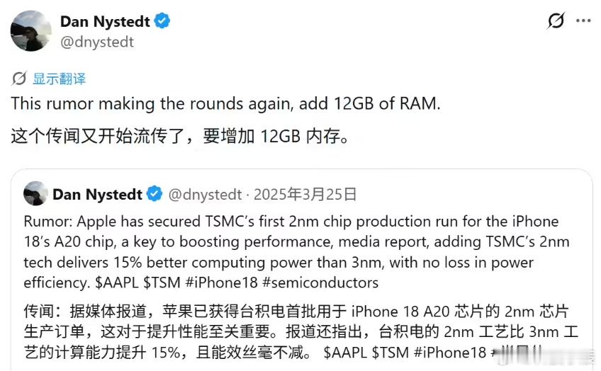 看到这个爆料我有点坐不住了。iPhone 18标准版直接干到12GB内存,比上代涨了一半,不是为了炫配置,是苹果那套AI功能太吃资源了。我前阵子还在猜标准版会不会只给10GB,这下直接拉满,看来AI这扇门苹果是打算全量推开。不过延后到2027年才发布……