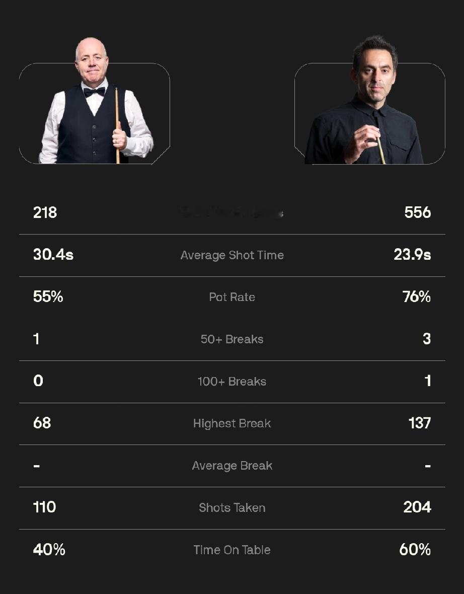 奥沙利文 6-2 希金斯 4月26日凌晨,世锦赛正赛第二轮,奥沙利文对阵希金斯,这是50岁的两人生涯第80次交手,也是世锦赛第7次交手。 第一阶段比赛前四局,奥沙利文打出单杆137分和两杆50+,3-1领先希金斯。 后四局,奥沙利文打出两杆50+。 最终,奥沙利文6-2领先希金斯,结束第一阶段比赛。 双方第二阶段比赛27日凌晨2点继续。