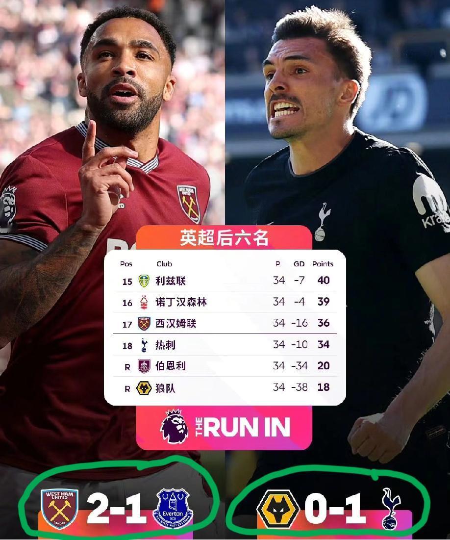 托特纳姆热刺1:0狼队、西汉姆联2:1埃弗顿,两支保级球队关键时刻迸发出无穷能量,双双在比赛中击败对手。让排名靠前的利兹联和诺丁汉森林顿感压力倍增,他们或许都在纳闷:不是说好的40分可以保级吗?怎么后面的都追那么紧呢? 而在我看来,利兹联和诺丁汉森林大可不必担心,降级球队大概率是在热刺和西汉姆联之间产生,热刺这次赢球,主要还是狼队太拉垮,不是他状态复苏了。 大家觉得呢?