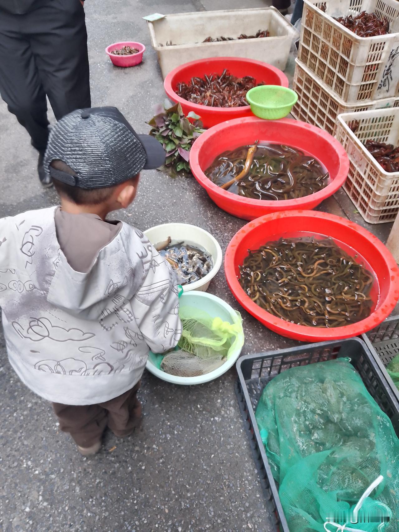 “嗲嗲!这不是蚂蚁,是龙虾!” 一早,木子又喊着“上街买呷呷”,确实天天待在校园里玩腻了! 牵着木子街上溜达,他就像出窝的喜鹊叫喳喳。 在鲜生馆对玻璃缸里的活鱼兴趣最大!为了观察胖头鱼游来游去,他蹲下身子看。错以为团鱼(鳖)是乌龟,闹出了笑话。看了多宝鱼看扇贝……围着鱼缸转,鱼市里的腥味受不了,我强拉硬拽才把他哄出来。 探着身子看龙虾,“爷爷,蚂蚁,蚂蚁,大蚂蚁!”木子边回头对我说,边欲摸龙虾状,吓得卖龙虾的谭师傅直叫:“嗲嗲,这不是蚂蚁,是龙虾!摸不得,摸不得,摸了要流血!”我对谭师傅笑笑,知道木子不敢,只是好奇罢了! 经过卖鳝鱼、牛蛙、泥鳅、柴鱼的摊位前,木子都会停下来,仔细观察。 爬上摇摇车左转右转,久久不肯下,我们都知道他只喜欢这样玩,摇摇车插电摇动他并不爱,曾经投过四次币,他都坐不了一分钟就下来。 过了老街,又沿着桃林河边走了一趟,还看了三轮车店,最后从新街慢慢打回转。 八点左右出来,牵着木子转,十点半才回到学校来,走了几里路,两岁两个月的木子好像还有一身劲没使完! 以后,是该带木子常到外面走走看看,开开眼界! 2026.4.26.