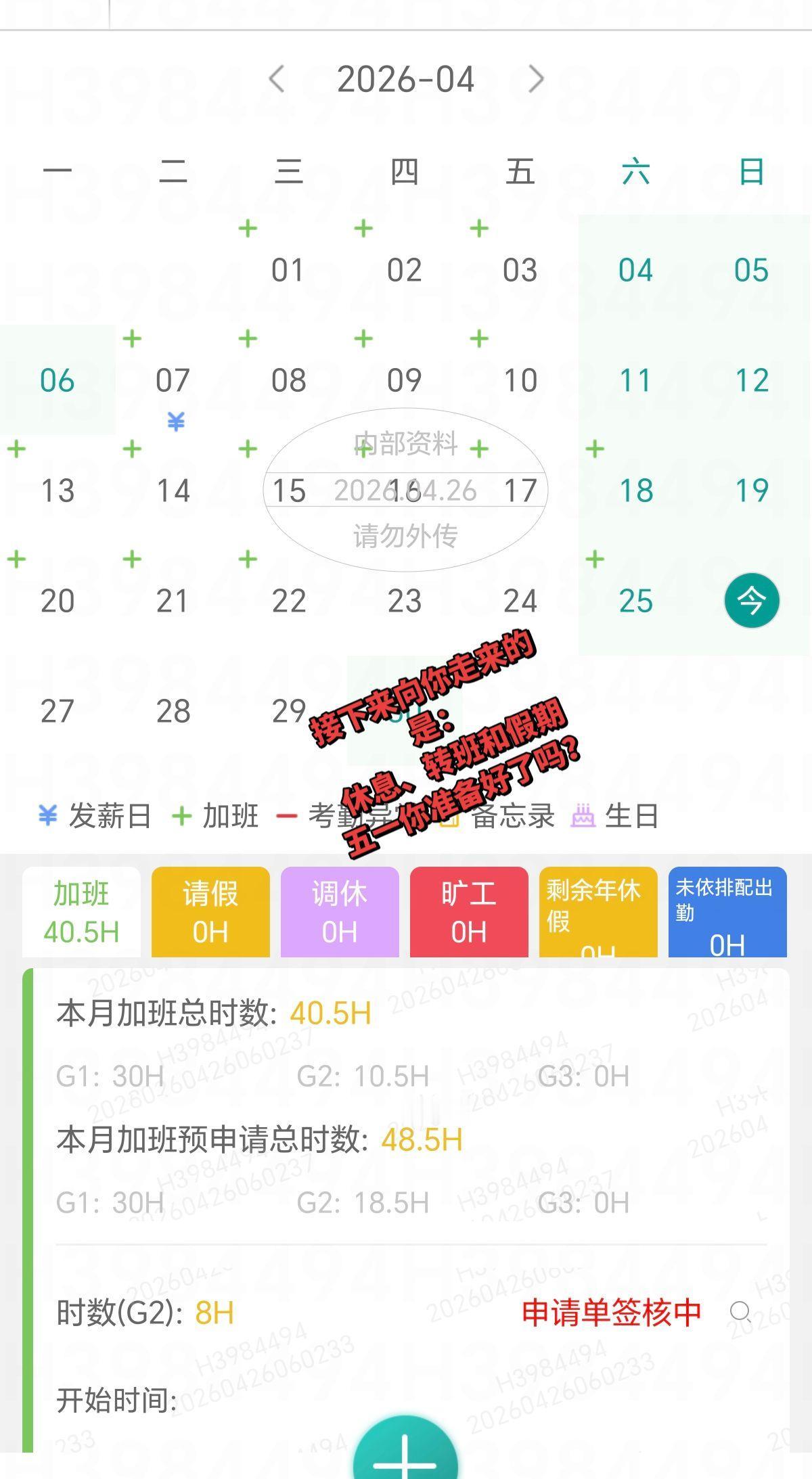 快到月底了,都加多少班了?连着一周都是下早班(八小时)… 港区富士康