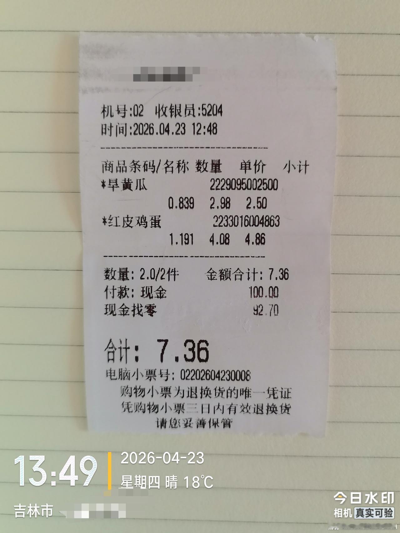 坐标吉林市, 2026年4月26日早晨07:15分,顾客偶然发现解放北路附近这家超市的价格绝对是吉林市最温馨的,没有之一 4月23日中午在吉林市解放北路的这家超市买了黄瓜和鸡蛋,结账的时候发现这个超市的价格精确到“分”,但是“分”绝对舍去,为每一位顾客的每一次购物都能节省1~9分钱。 事情虽然很小,但是很温馨,能够体现出这家超市处处为顾客的薄利多销的经营理念。 顾客结账时把“分”钱全部舍掉的超市在吉林市不多,这个超市应该是唯一的。(当天实际花了7块3毛6,超市只收了7块3毛钱。)