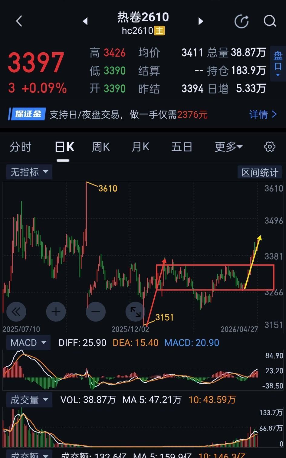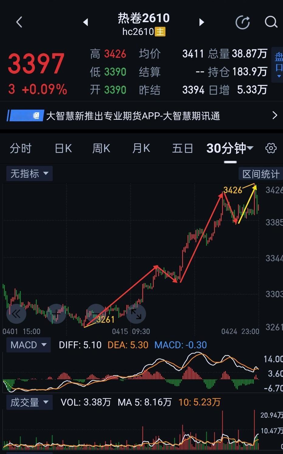 热卷2610,震荡中酝酿突破。 热卷2610,不同周期逐极拆解走势结构。 周线,图(1)仍处于日线级别中枢震荡中,当下的周线一笔上(黄色线段)仍在生长中。依照目前走势结构,热卷正试图摆脱下降趋势线压制。热卷在没有效站稳3610前,暂用日线中枢震荡视角观察。 日线,图(1)黄色线段在次级别(图2),目前走势是三十分钟级别盘整上的结构。若后期能呈现日线一笔下回调不进入该中枢,将构成该级别三买点,可择机积极参与。 三十分钟,图(2)黄色线段在次级别(图3)是线段走势。依照目前特征,大概要完成一个五分钟级别中枢构建后,再决定方向选择。 五分钟,周一观察图(4)一分钟中枢能否有效站稳。站稳,图(3)的黄色线段仍有机会向上生长。若不能站稳,暂用五分钟中枢构建的视角观察。 热卷2610,目前可用三十分钟级笔跟随。在没有形成图(2)三买结构前,还不宜过度放大格局。(图中黄色线段属于待完成走势) 此篇评述是应粉丝要求略做解读。目前主要参与沪镍、碳酸锂、券商的操作。个人精力所限,热卷暂不纳入主要跟踪范围,不必因此添加关注。