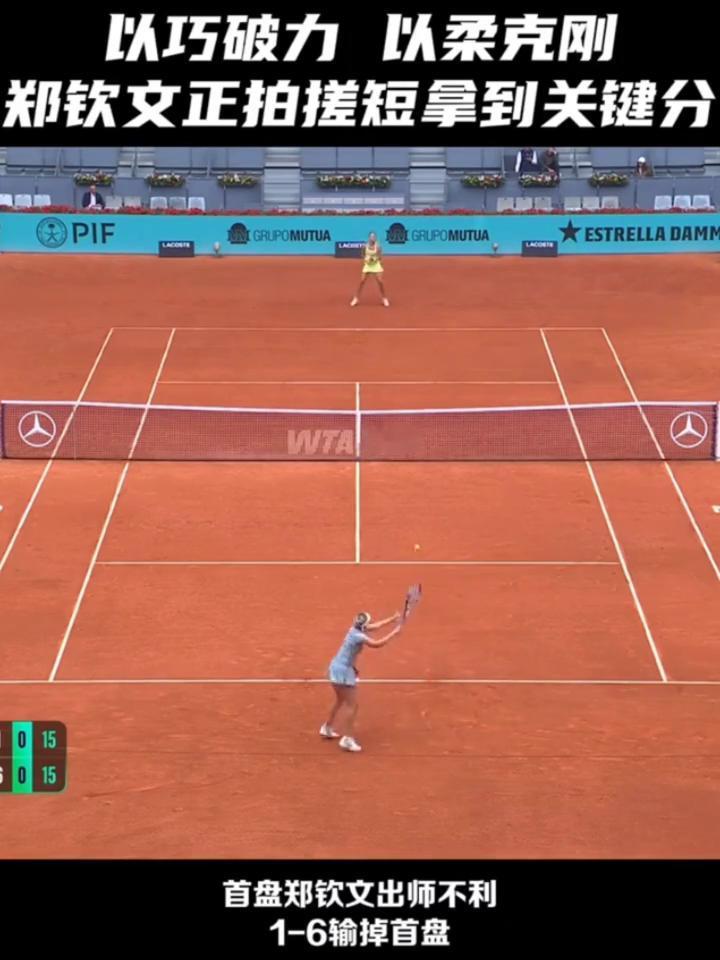 以柔克刚正拍搓短,郑钦文落后不放弃将比赛拖入决胜局。 WTA1000马德里站,郑钦文vs肯宁。 首盘郑钦文出师不利,1-6输掉首盘。第二盘郑钦文状态迅速回升,两度破发成功6-3赢下第二盘将比分扳平。决胜盘郑钦文4比3暂时领先肯宁,目前已打出9记ACE球。