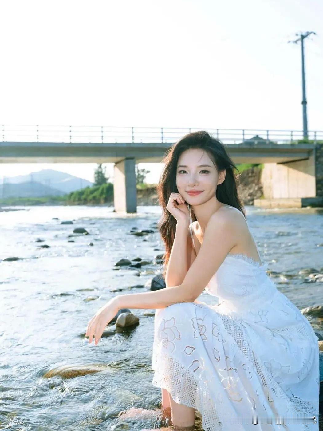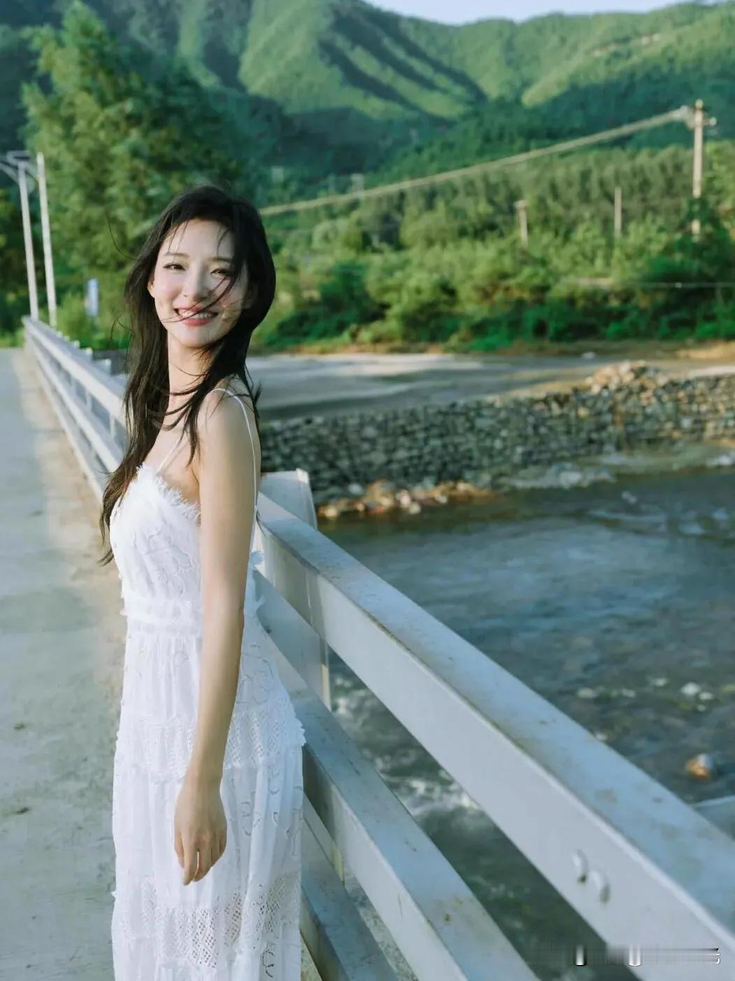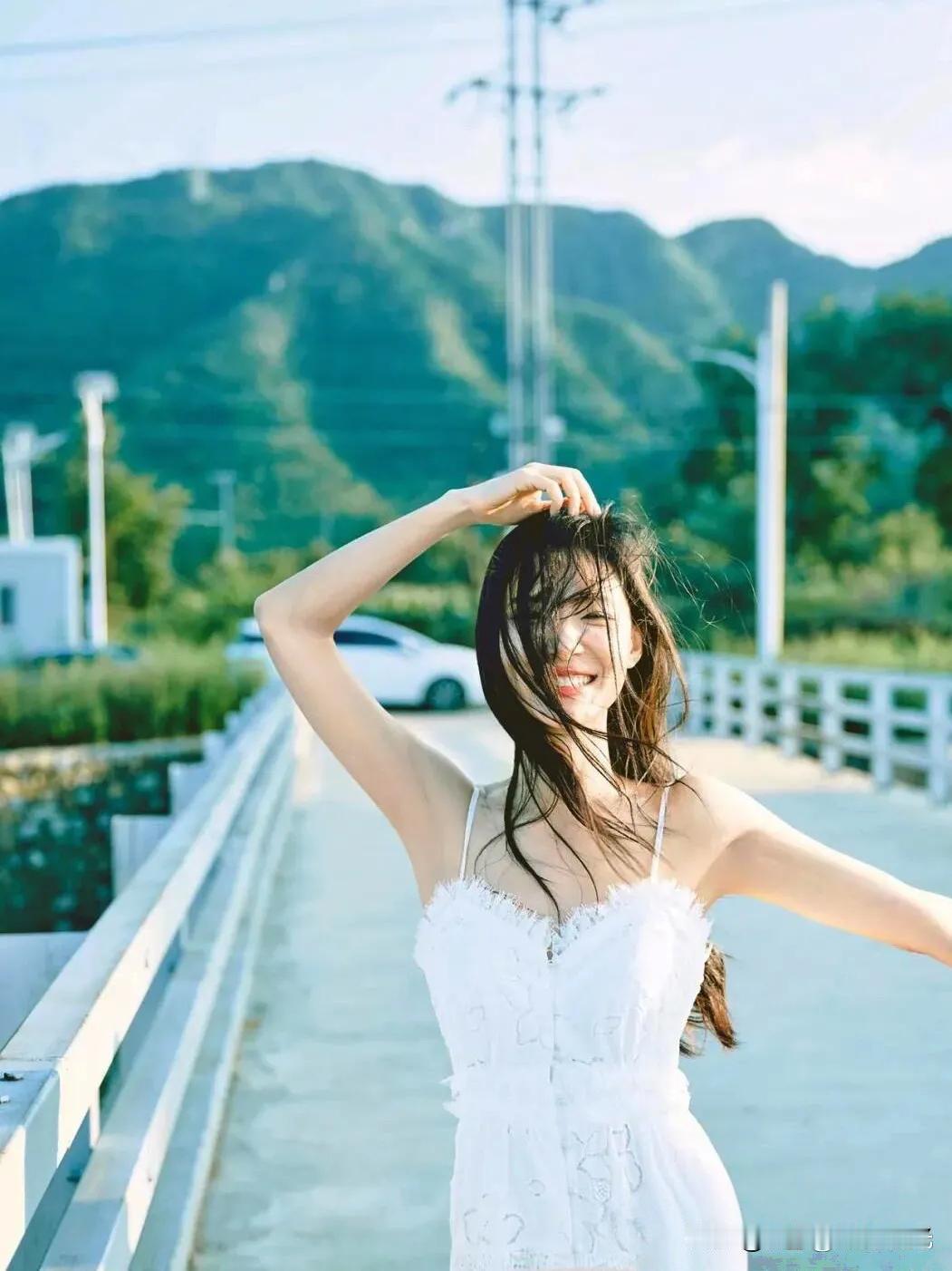 阳光下的白裙少女,微风轻拂,笑靥如花。