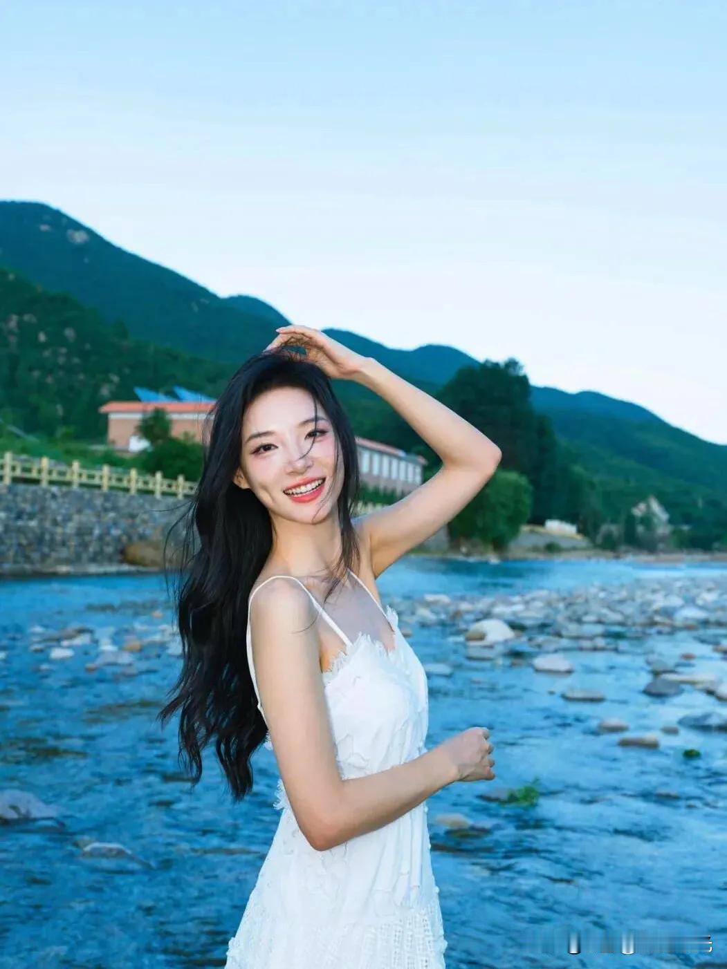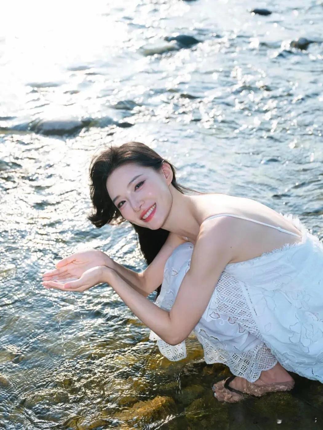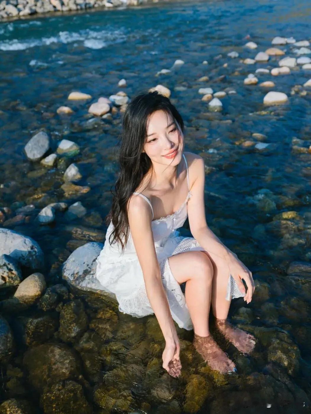 阳光下的白裙少女,微风轻拂,笑靥如花。