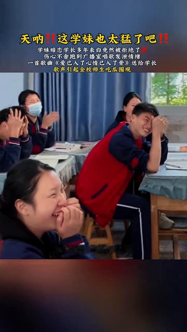 天呐!这学妹也太猛了!学妹暗恋学长多年表白竟然被拒绝了,伤心不舍跑到广播室唱歌发泄情绪。一首歌曲《爱已入了心情已入了骨》送给学长,歌声引起全校师生吃瓜围观。 可是爱已入了心情已入了骨,不是一厢情愿想结束就结束,我们一起走的路全历历在目,怎么劝自己释怀大度,为什么爱上你拼了命还是输,为什么付出全部你都不在乎,我像个红了眼像翻盘的赌徒,拿着心甘情愿疯狂下注。