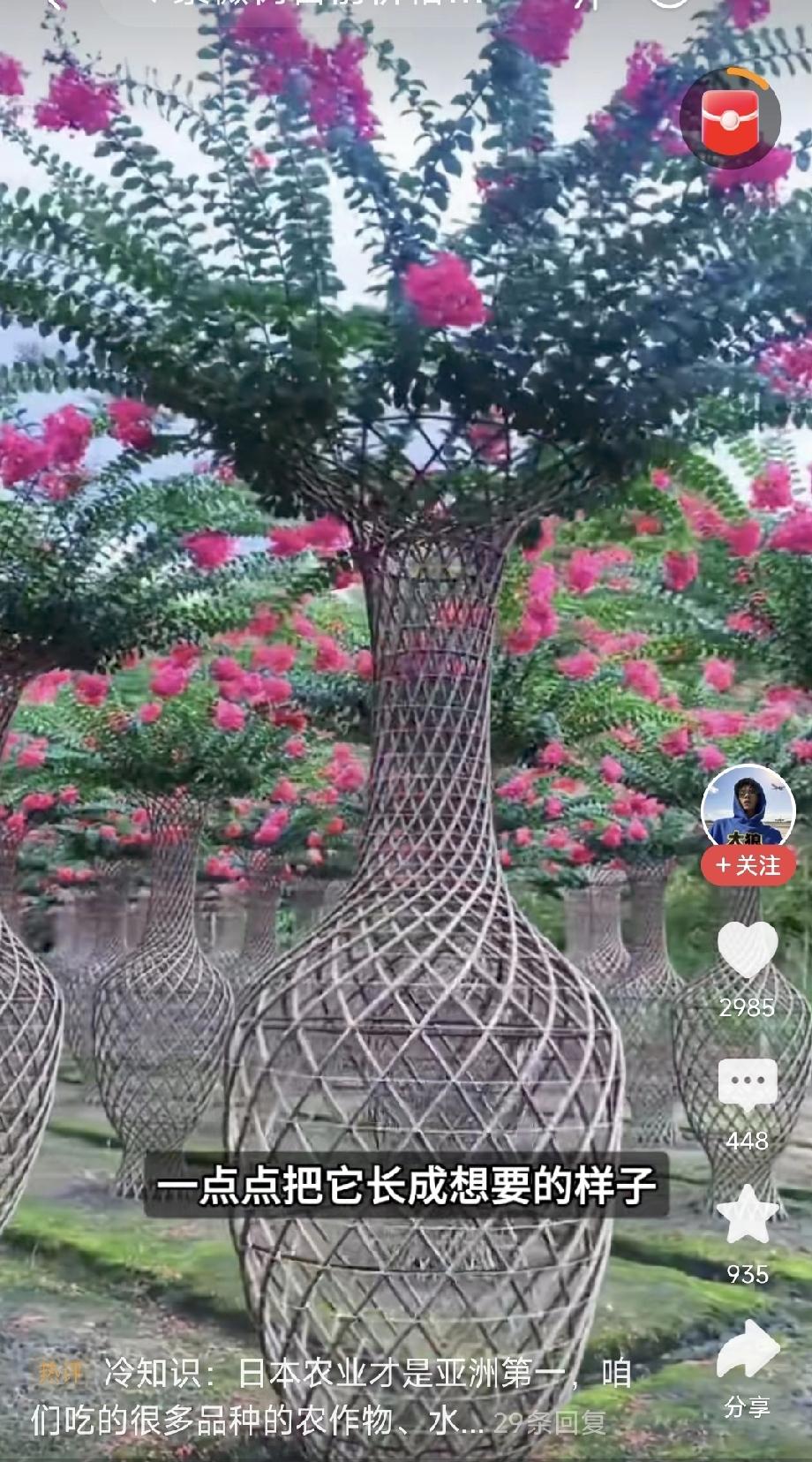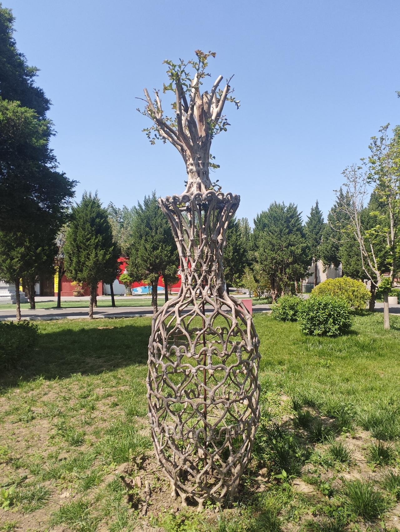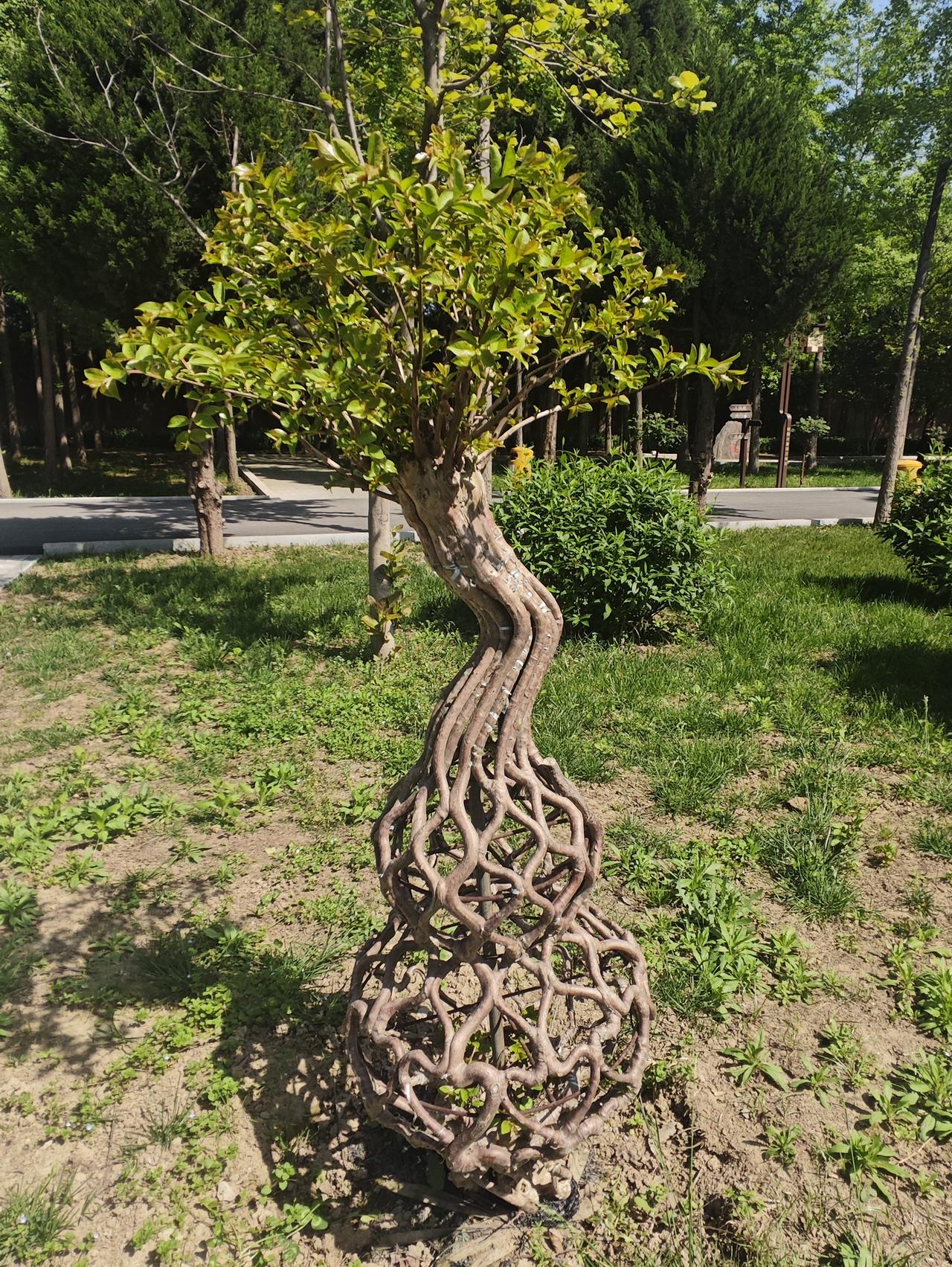 紫薇花瓶树 前几天骑行到祖庵重阳宫,看到院内的紫薇花瓶树,感觉甚为稀奇,围着这几棵树转了好一会,思考着这些紫薇树条是怎么以各种姿态长到一起的,想了半天也没有明白。 回来后,到网上查了一下,原来紫薇花瓶树是一个很大的产业,地点主要成都温江和都江堰等地。种这样的紫薇花瓶树,花农首先要栽种苗木,苗木成型后才可以制作花瓶等各种造型,造完型后重新埋入土壤里,靠控水控肥,让紫薇花瓶树慢慢生长,紫薇树的特点就是枝条在其生长过程中,树皮接触的部分慢慢就长在一起了,形成了人们需要的样子,看着很有艺术感哈! 看着这些各种形态的紫薇花瓶树,让我想起了龚自珍的《病梅馆记》来,“梅以曲为美,直则无姿;以欹为美,正则无景;以梳为美,密则无态。”龚自珍认为这些都是“病梅”,“病梅”的根源在于文人画士们的心理上…… 哈哈,当然龚自珍的观点有些“望梅兴怜”了,何谈“病梅”也……