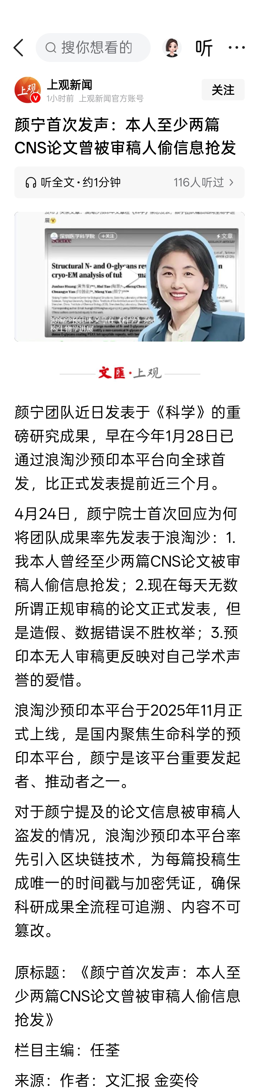 颜宁首次发声:本人至少两篇CNS论文曾被审稿人偷信息抢发