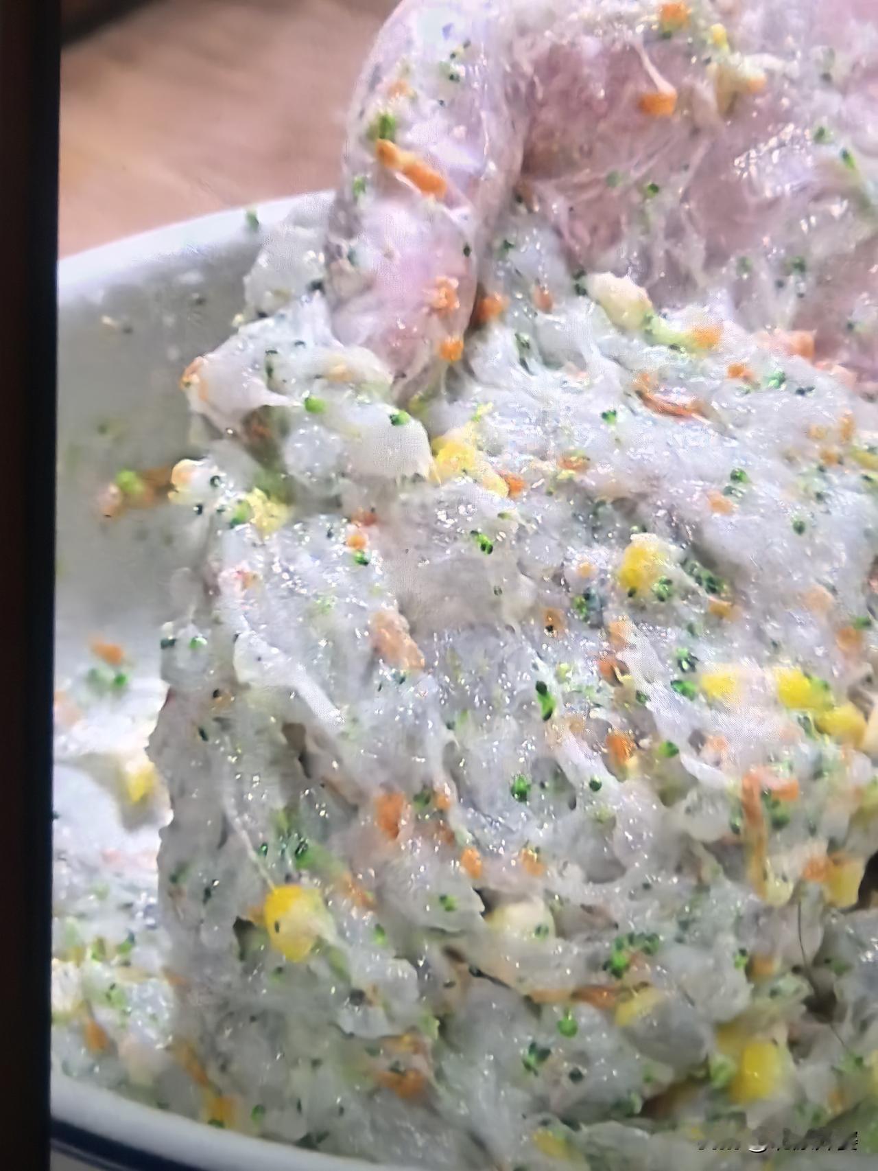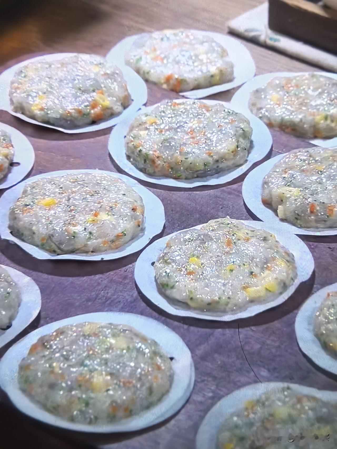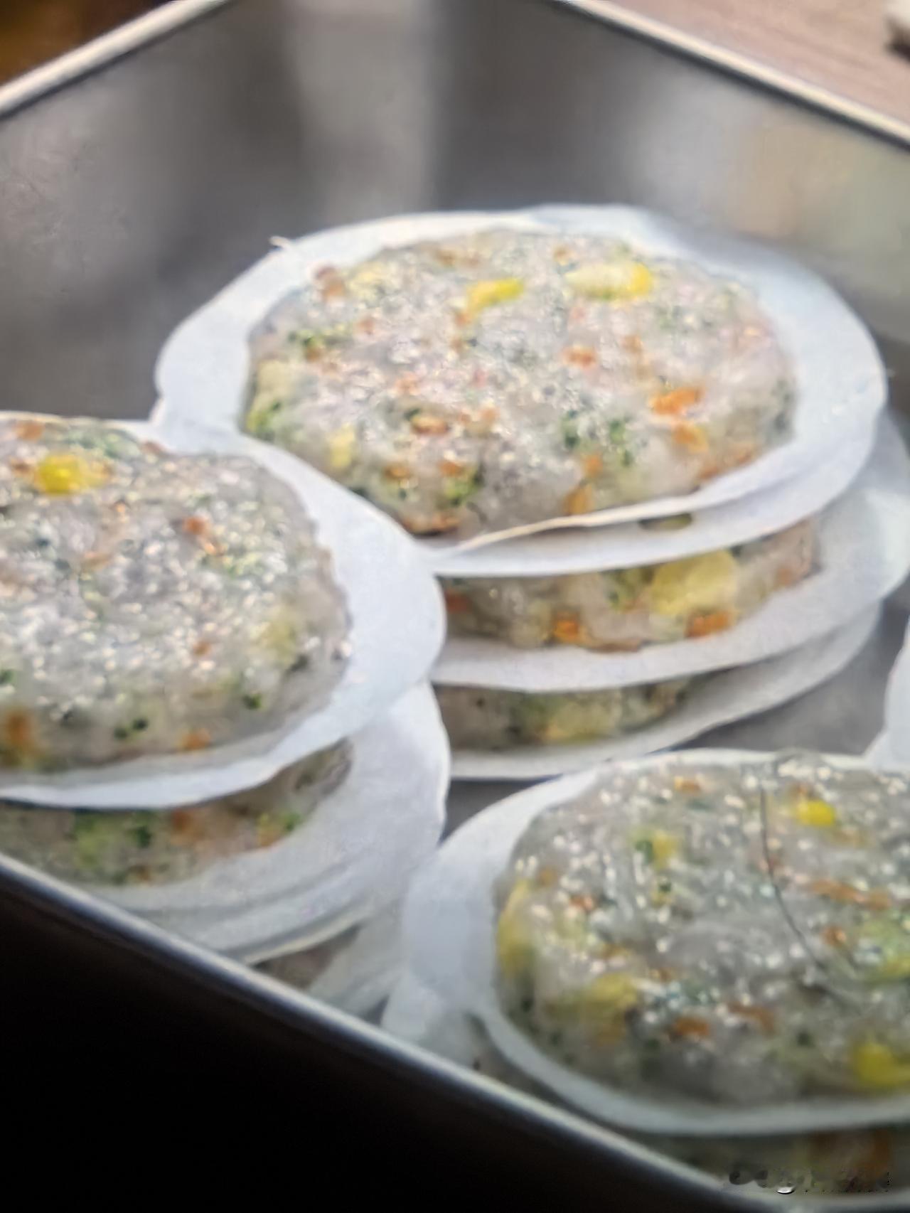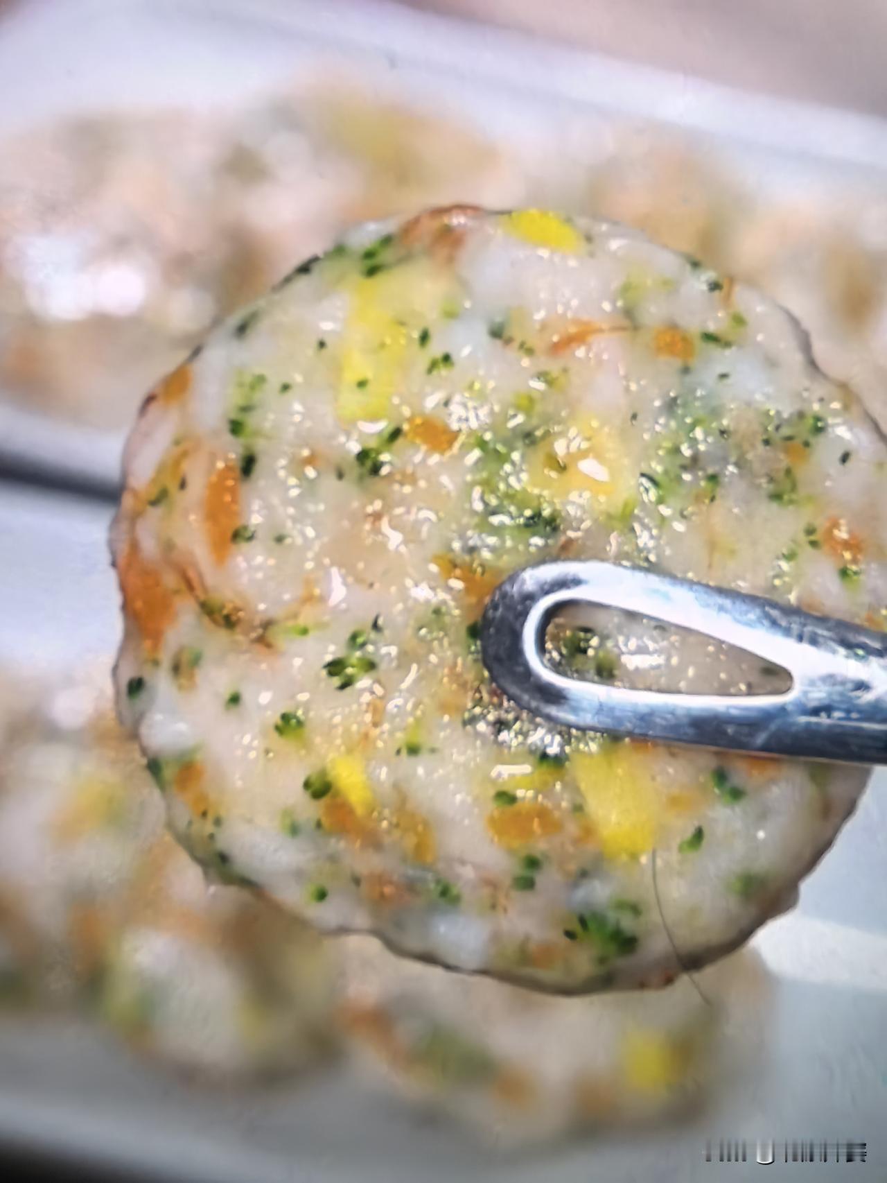 今日早餐,蔬菜虾仁饼,营养好吃,做法还简单 有时间可以多做一些,冷冻起来,当早餐非常不错,吃的时候不用解冻,直接烙熟就可以 每次做这个蔬菜鲜虾饼,我家俩外孙都可爱吃了 1.新鲜的大虾,去掉虾头虾壳,清洗干净,一半切小颗粒,一半剁成虾泥 2.切点西兰花,胡萝卜碎,水开焯下水,捞出过凉 3.再准备点熟的玉米粒 4.所有食材处理完,混合在一起,调味,加盐,胡椒粉,少许淀粉,一个蛋清,加入蛋清,虾饼吃起来Q弹紧实,抓匀即可 5.手上抺油,这样就不粘手了,随便揪一块,摁成薄饼,用中小火烙到两面金黄就熟了,又鲜又嫩的 做的多吃不完的,用蒸笼纸隔开,放保鲜盒里密封好,放冰箱里冷冻