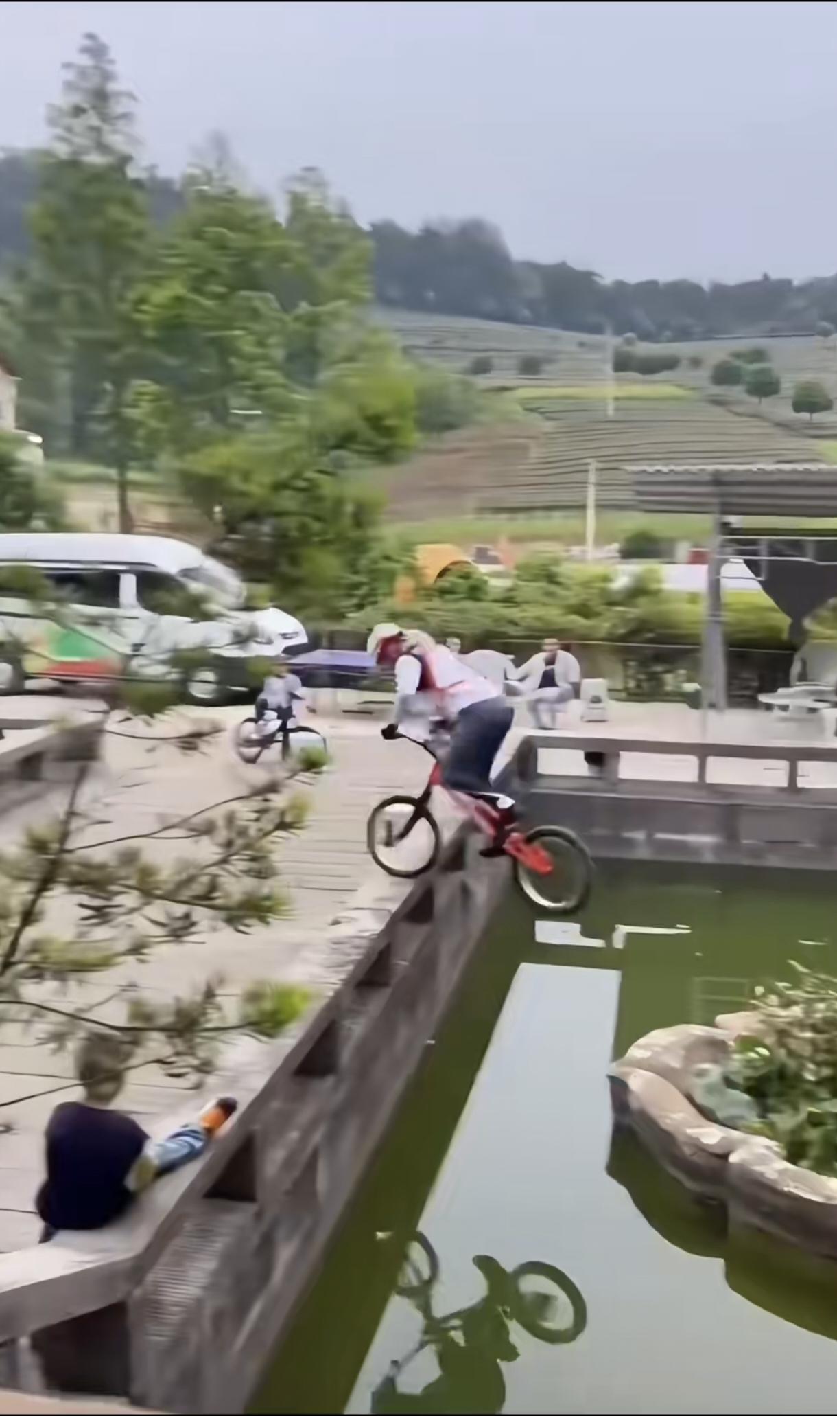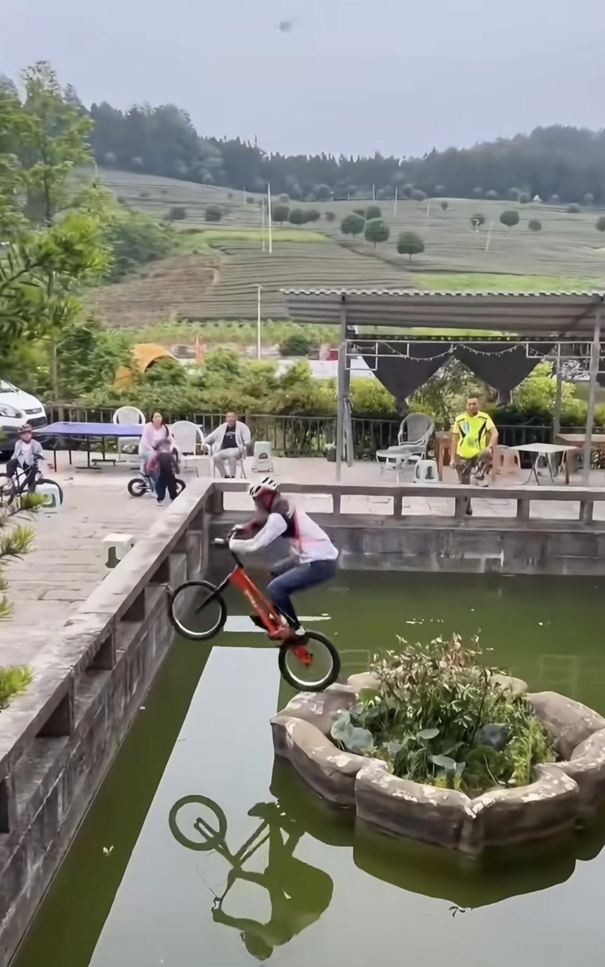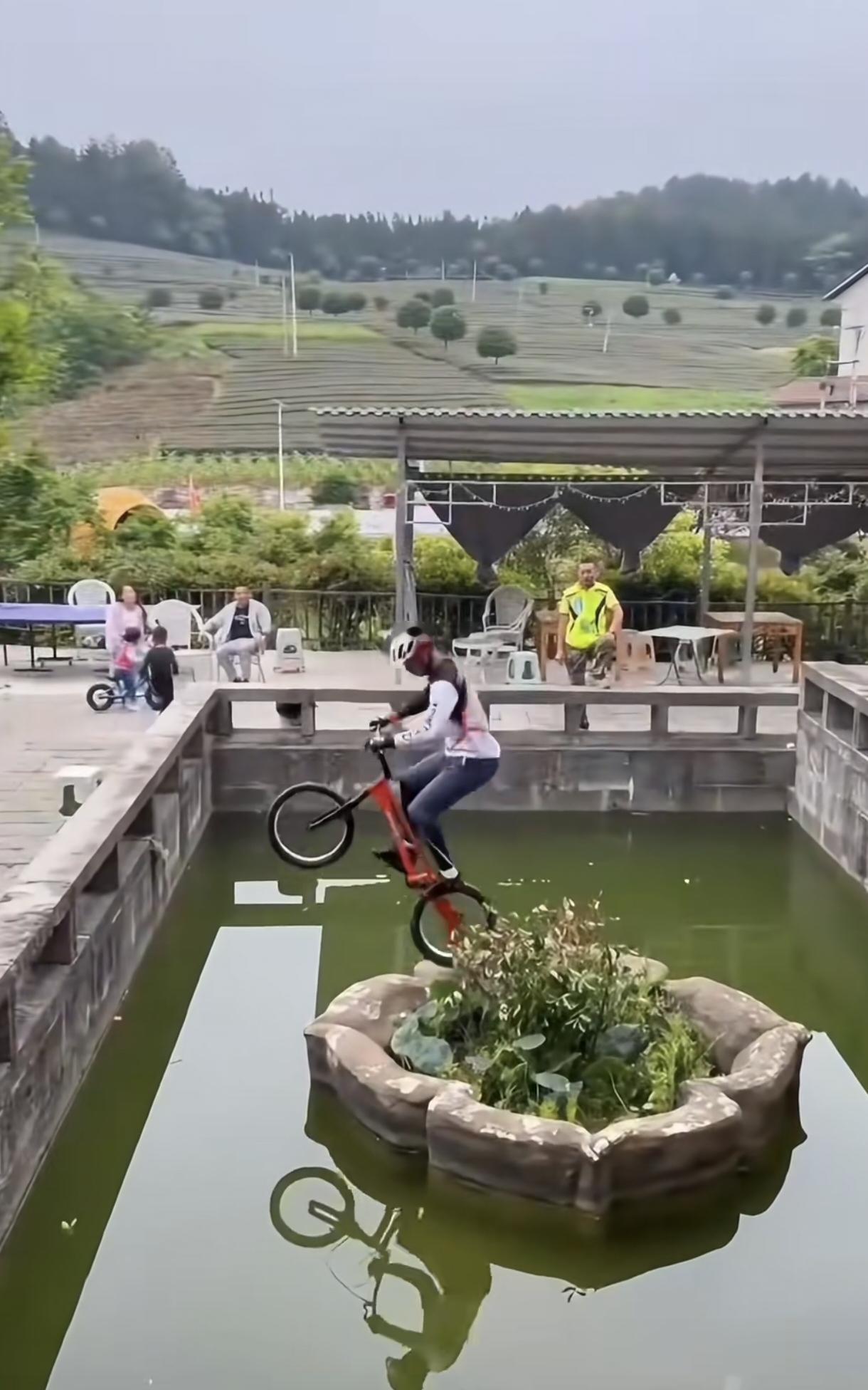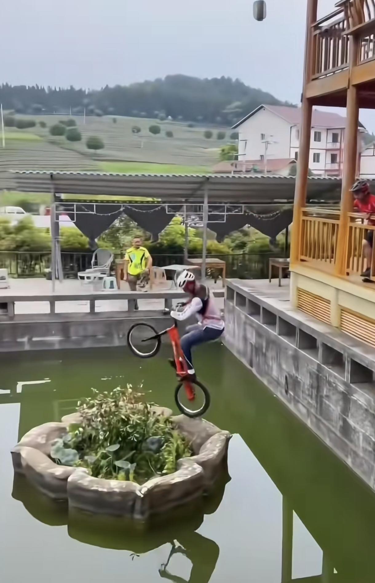 这么牛,人车一体,如履平地,这个不亚于蜻蜓点水。90年代开始,大陆很多年轻人玩这个很厉害,现在都变鬼火了。以前有个节目叫趣味竞技,里面好多牛人。这个农家乐设施都挺结实的,必须肯定建筑设施质量过关!