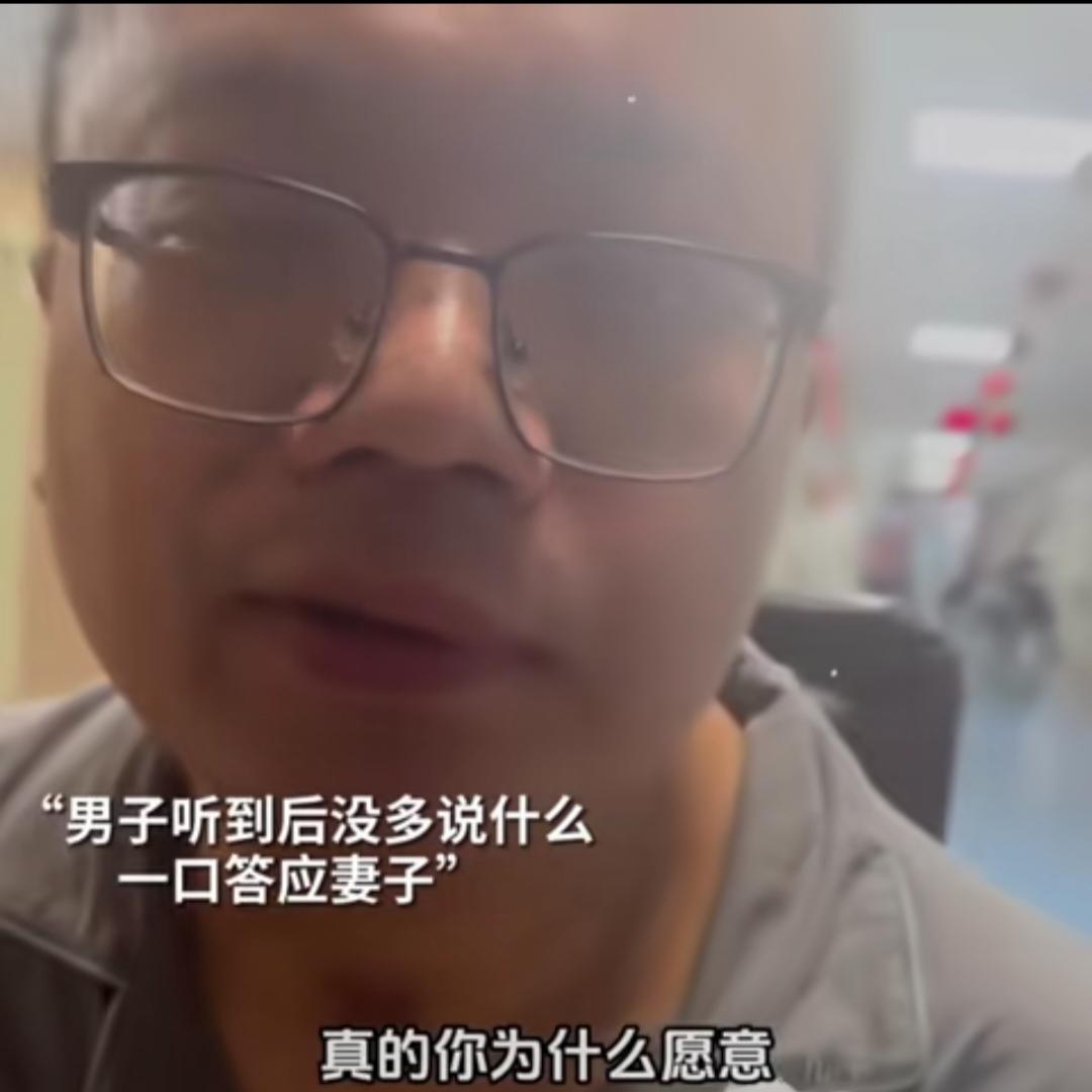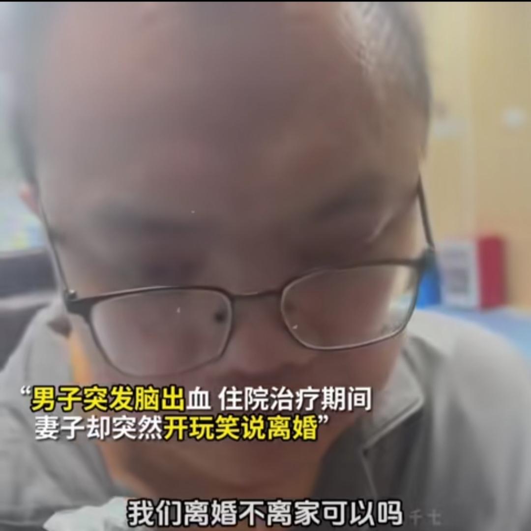 中年男子突发脑出血,住院治疗期间,正在照顾他的妻子忽然开玩笑的说:“老公,我问你个问题,我们离婚但是不离家可以吗?” 问这个问题的时候,妻子的声音虽然还是一如既往地温柔,但是丈夫那略有呆滞的脸上还是出现了明显变化。他低着头思考了一会后,抬起头看着妻子,缓缓地低声说出两个字:“可以!” 听到丈夫只说了“可以”两个字,并没有质问,也没有哀求,妻子忍不住地说了句:“真的?”随后又问道:“你为什么愿意?” 听到妻子的询问,丈夫一时间并没有回答,只是低着头用手搓了搓鼻子,仿佛是在用这个动作来掩饰心中的想法。 看到丈夫没有说话,等了一会,妻子向他解释表示:是自己身边的人问她,丈夫现在身体不好了,她有什么打算,以后怎么办? 对于身边人的询问,妻子表示自己也不知道怎么办,于是便想问问丈夫。 “因为,因为我身边的人问了我一下,(你现在这种身体状况)我现在怎么搞吗?我也不知道怎么搞!”妻子向丈夫解释道。 听完妻子的解释,丈夫轻轻转过身,低着头一言不发,厚厚的眼镜片后面,似乎有了流花。 看到丈夫转过身不说话,妻子又再次追问:“你为什么可以呢,你先说一下你的想法。” 听到妻子的追问,丈夫转过身,抬起头看着她,缓缓地说道:“成人之美吧!” 听丈夫说出“成人之美”4个字,女子似乎意识到了什么,不由的惊呼了一声:“啊!”语气中仿佛带着一些惊讶,一些不解,好像没想到丈夫会这么说,或者是担心丈夫多疑了些什么。 接着丈夫再一次重复“成人之美吧”。 听到丈夫再一次说出“成人之美”,女子问:“成人之美,什么意思呢?” 对此,丈夫表示:“不是让你难受,让你不敢尝试了。”言外之意,不想让她难受,让她可以去尝试一下。 看到丈夫说完上面那句话后,又转过身子低下头,妻子似乎有点急了,连忙说道:“什么意思,什么意思啊!你说的是什么意思啊!” 然而,此时的丈夫,只是低着头,一句话也没有再说。已经半秃的头顶在白色灯光下,显出略带油腻的光,厚厚的眼镜片下,看不清他眼睛的模样。 看完这个视频,不免让人有些唏嘘! 一个中年男人,上有老下有小,事业也到了瓶颈期,本来压力就很大了。如今身体不好了后,又被妻子突然的提出这种问题,心里难免有些不好受。 不过,面对妻子的询问,明知道自己的身体不好了,他又能如何回答呢? “成人之美”,不过是一种无奈,更可以说是一种掩饰,或是仅剩下的一丝体面吧! 其实,在妻子问出这个问题时,无论是在开玩笑,还是在试探,或者本就是认真的,双方之间已经出现难以修复的裂痕。 她问出这句话时,哪怕是在开玩笑,心里也已经有了类似的想法,不然身边的人怎么会有那样的询问呢? 所谓的离婚不离家,不过是即害怕丈夫拖累了她,暂时又没有找着合适的地方罢了。如果找到了,可能也就让丈夫“成人之美”了吧! 难道如今的婚姻观,真的已经变成“夫妻本是同林鸟,大难临头各自飞”了?
