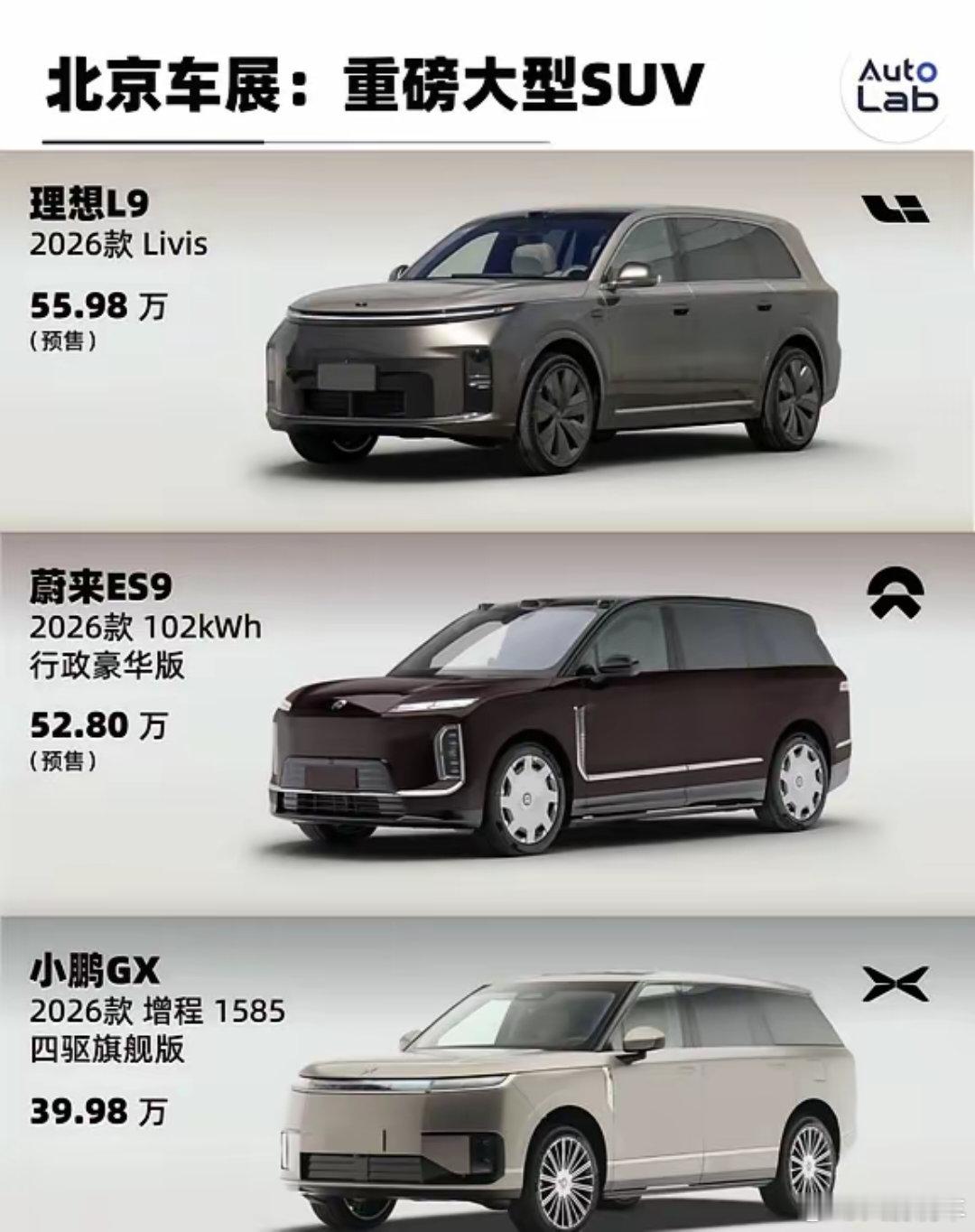 蔚小理三款大型SUV,谁更香?就在今天的北京车展上,蔚小理三款重磅大型SUV:理想L9 Livis、新款蔚来ES9和小鹏GX也亮相了关注这三款重磅大型SUV的人不在少数,其中理想L9 Livis和新蔚来ES9预计将在5月正式上市有相关购车需求的朋友们,你会选择哪款呢?新能源汽车 值得入手的车 理想L9livis 蔚来ES9 极氪009 焕新极氪009 理想L9 大型SUV 汽车资讯早知道