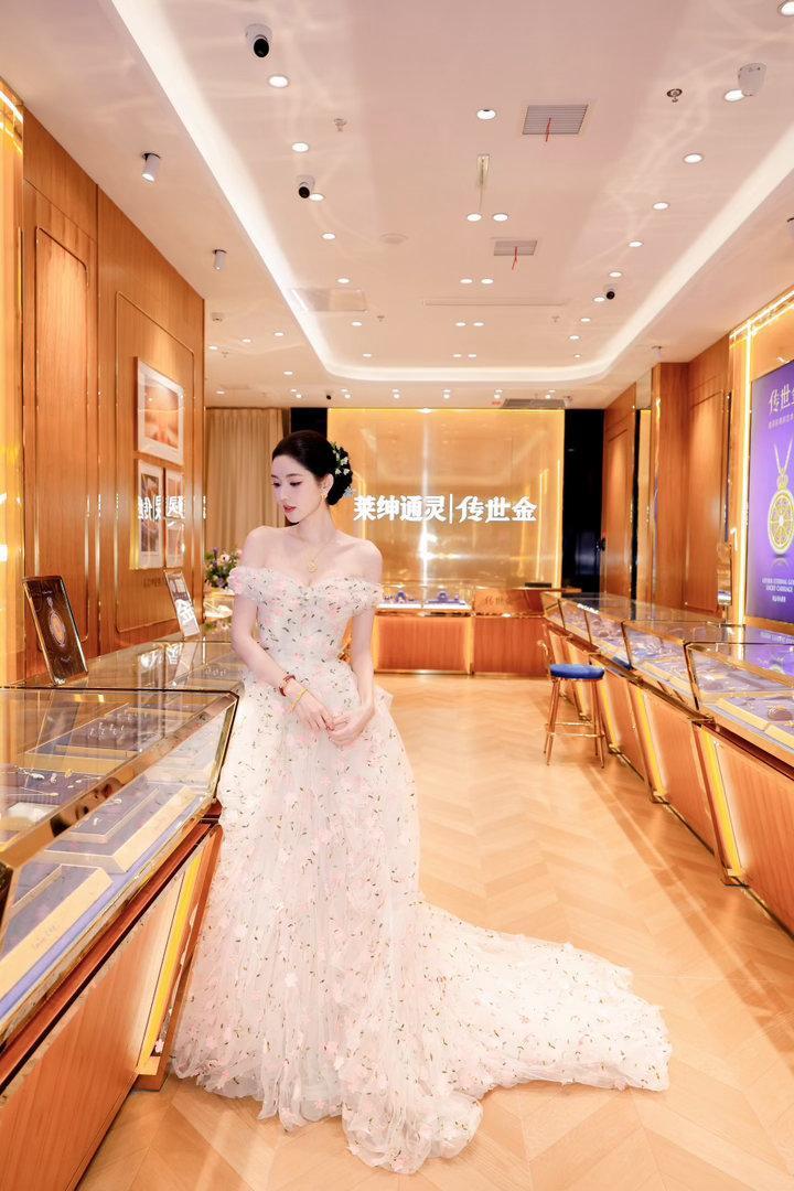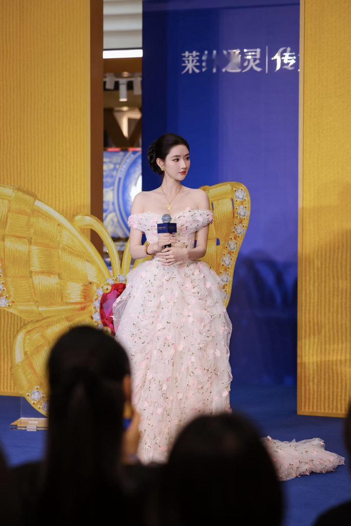 王玉雯一字肩花朵长裙王玉雯苏州活动状态 她侧身站着的那张,裙摆被风轻轻吹起,发丝也飘起来。整个画面动感又温柔,像是电影里才会出现的镜头。