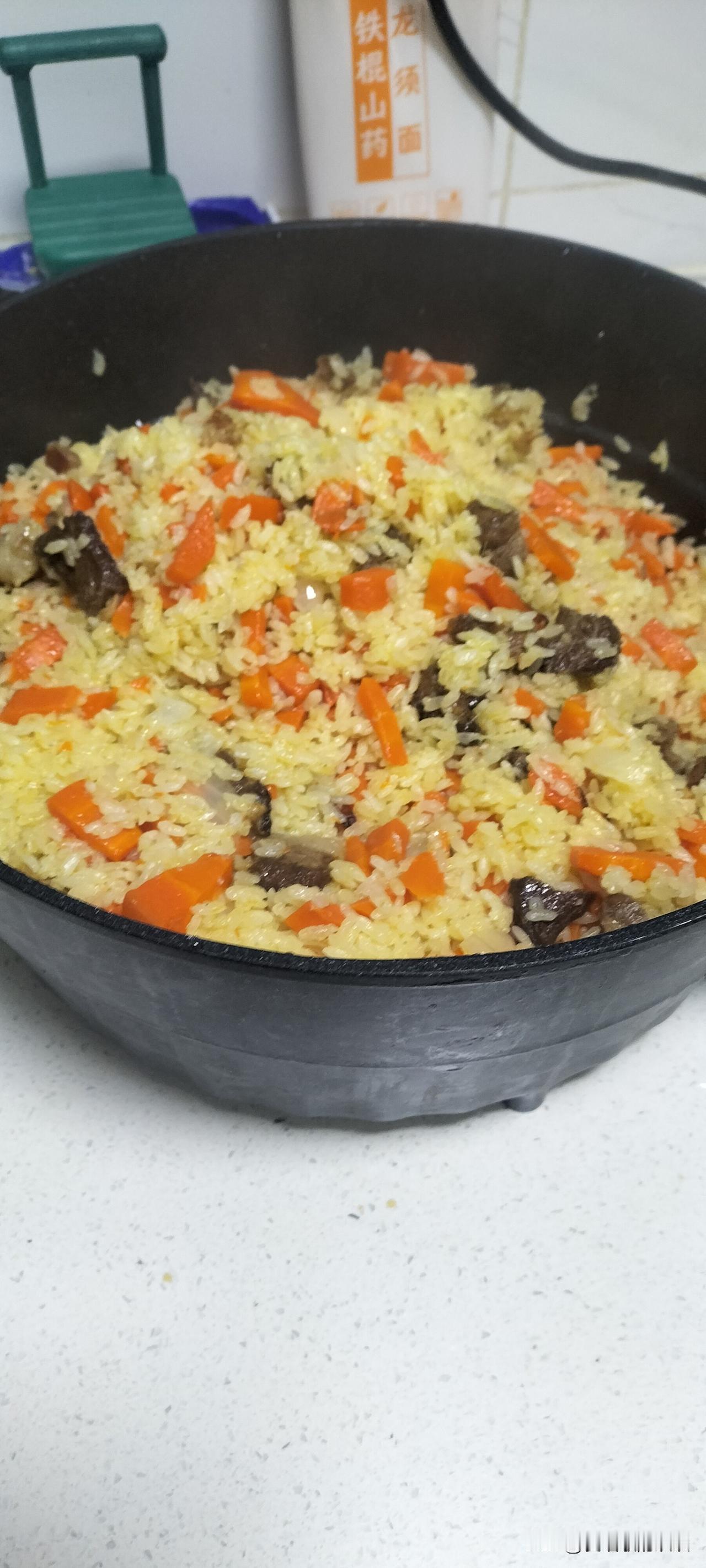 从小到大,我一直都特别喜欢吃维吾尔族大叔做的新疆羊肉抓饭。 记得30年前,我怀孕那会儿,几乎每天中午都要吃一份抓饭。 那时候,我恰巧在菜市场里卖水果。菜市场里刚好有一位维吾尔族大叔开了一家抓饭店。味道特别棒! 我想吃的时候,他就把抓饭给我送到水果摊上。 吃完以后,他也会很主动的再把盘子收走。 可以说,我就是他的老顾客。所以他每次见到我总是笑嘻嘻的。 那是我这辈子吃过的最好吃的抓饭。简直就是米香四溢,软糯醇香。 吃完一份还想吃第二份。天天吃都吃不腻的那种。 那时候,一份素抓饭才3元钱。羊排抓饭8元钱。 即使这样,那时候我也每天吃不起8元钱一份的羊排抓饭。 我大多时间吃的都是3元钱一份的素抓饭。 新疆羊娃子肉+红黄相间的萝卜+晶莹剔透的大米。经过维吾尔族大叔的神奇翻炒,就变成了香喷喷的羊肉抓饭。 我曾经也尝试着做过好几次抓饭,但都以失败告终。 不知道为什么?同样的做法,我做的抓饭不是软了,就是硬了,要么就是把握不住量做多了。要么就是味道不咋地? 后来,我就再也没有做过抓饭。 心想,反正又不是天天吃。会不会做抓饭无所谓。想吃就去饭店买一份回来吃就OK。 直到有一次,我去饭店吃抓饭的时候。发现羊排抓饭已经涨到了18元,素抓饭也已经涨到了10元钱。 关键是,我再也吃不出当年我怀孕时吃的那种抓饭味了。 更气人的是,有一次我去饭店特意去吃羊排抓饭的时候,发现抓饭里面的大米竟然没有蒸熟,是夹生的。 我怕吃了半生不熟的抓饭会胃疼,就尝了几口无语的饿着肚子离开了。 就感觉我花了18元钱,却没有吃饱肚子,实在太冤了。 从那以后,我就再也没有去过饭店吃过抓饭。 而是转手在网上花了180元钱买了一口做抓饭的锅。准备自己做抓饭。 功夫不负有心人。经过多次蘑练,我现在终于能做出一个锅香喷喷的抓饭了。 什么碎肉抓饭,羊排抓饭,羊拐抓饭,孜然味的抓饭,葡萄干抓饭,素抓饭等等我都会做(下图)。 而且,做的比饭店里面的都好吃。 毕竟,我做的抓饭真材实料。羊肉和胡萝卜放的都比饭店多。 最主要的是自己做的抓饭成本低,吃着干净卫生又省钱。大米根据自己的口味,蒸的不软不硬吃着刚刚好,根本就没有不会伤到胃。 更重要的是享受做美食的快乐,何乐而不为? 你们大家平时都是在家自己做抓饭吃,还是去饭店买抓饭吃呢?听说现在的羊排抓饭已经涨到了20元~40元钱一份。素抓饭也已经涨到了大概15元钱一份。关键是不一定好吃。其实做抓饭非常简单。失败是成功之母。只要你多试两次,一定会做成功。你们大家说我说的对吗?欢迎大家在评论区留言。晒图笔记大赛 下图全是我自己做的抓饭。孜然味的抓饭。葡萄干抓饭。原味抓饭。再配上自己凉拌的小菜,吃起来简直就是一种美味。 我是爱唱歌的欢欢,平时喜欢唱歌,但是更爱美食,如果喜欢我就点赞关注我吧!