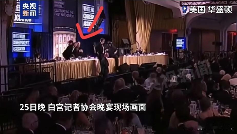 特朗普参加活动,突发枪击事件! 华盛顿希尔顿酒店,特朗普刚进场30分钟,现场突然至少响起了5声枪响,特朗普在安保陪同下紧急离开。 白宫记者协会晚宴,这是特朗普就任以来首次参加,之前一直拒绝参加。 就在特朗普进场30分钟后,当时他正坐在讲台上,下面的记者正在吃晚宴,现场突然响起了枪声。 安保人员迅速围住了特朗普,现场的记者们紧急躲到桌子底下,随后特朗普在保护下紧急离开。 据媒体报道,枪手在酒店金属仪器检测区已经被击毙。 特朗普安全离开后,表态晚宴将继续进行,他和第一夫人,副总统万斯还有一众官员都没有事。 希尔顿酒店已经被特勤团团围住,进行检查和保护。 按照常理说,白宫记者协会晚宴,特朗普还会出席,那么高的规格,进场时安保应该会检查的特别严格,枪手是怎么能混到晚宴现场的? 还有就是,枪手虽然开了枪,但是他的目标是谁呢?为什么要在特朗普出席活动时枪响了? 这就看美国的调查结果吧!