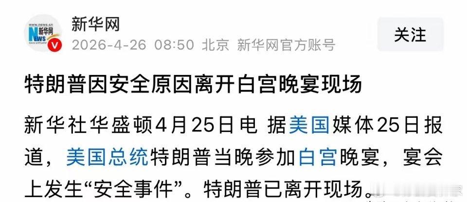 新华社发布重磅消息白宫记者晚宴发生枪击事件,如何影响全球股市和黄金市场:一觉醒来重磅消息,新华社也确认了白宫记者晚宴发生枪击事件!目前的事实是美国总统特朗普和副总统万斯都没事儿,枪击事件发生在华盛顿酒店,不是在会场;枪手有的说被击毙有的说被抓,可能不止一个。这事儿谁干的?不重要,重要的是影响:一是白宫记者晚宴取消,特朗普说三十天后再举行;二是目前看对全球油价是利空消息,国际原油暗盘价格下跌1.24%;那么这对全球股市来说是利好消息,也利好黄金价格。主要看特朗普对此事的反应,还有后续调查的凶手情况,点赞关注,让子弹再飞一会儿,我会第一时间解读!