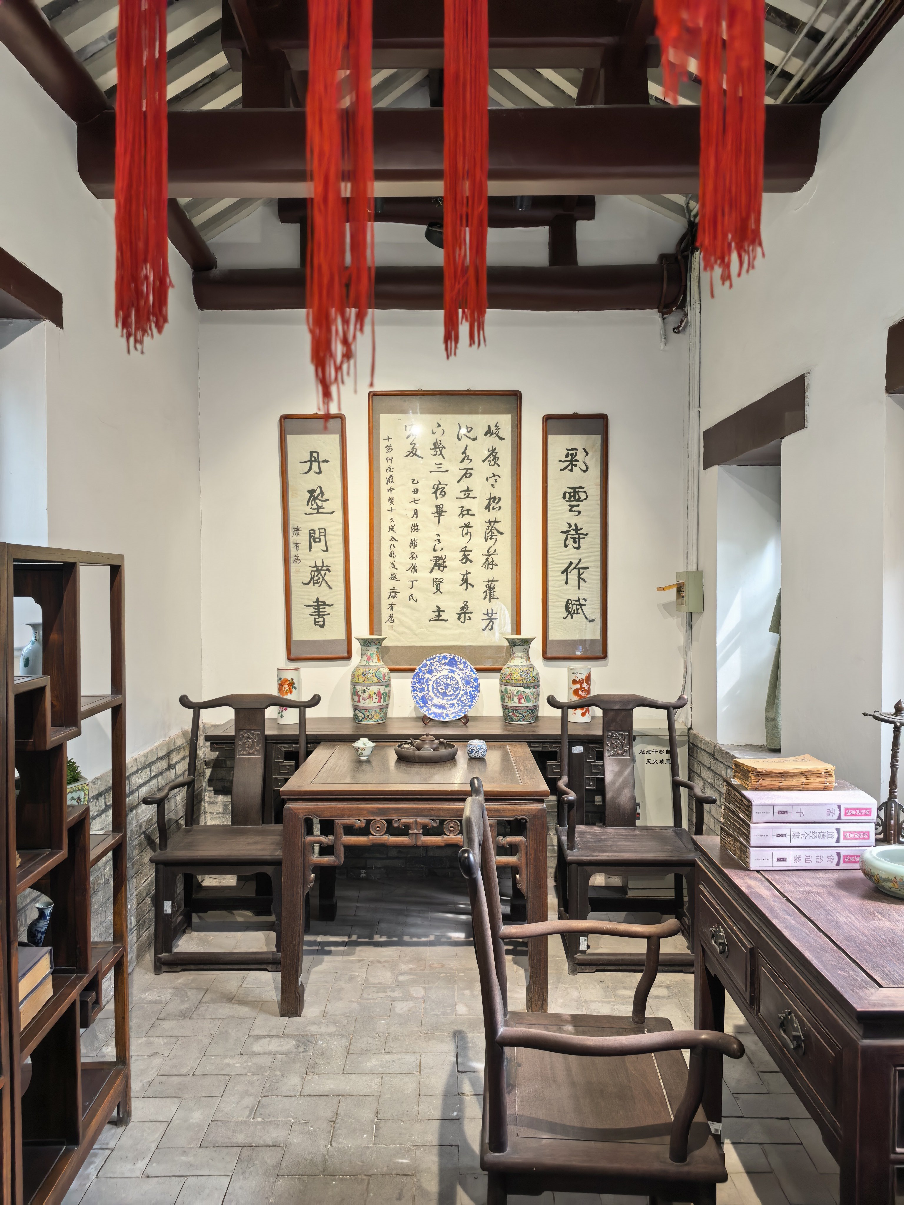 我印象最深的还是春雨楼,名称出自陆游“小楼一夜听春雨,深巷明朝卖杏花”,是86版《西游记》“计收猪八戒”中高小姐绣楼的取景地,园内有经典剧照展示,电视机播放相关剧情。还有艳香楼,位于春雨楼前方,是十笏园主楼,其位置曾是明代刑部郎中吴邦国的老房子,建筑有500年历史,楼内有丁善宝蜡像。