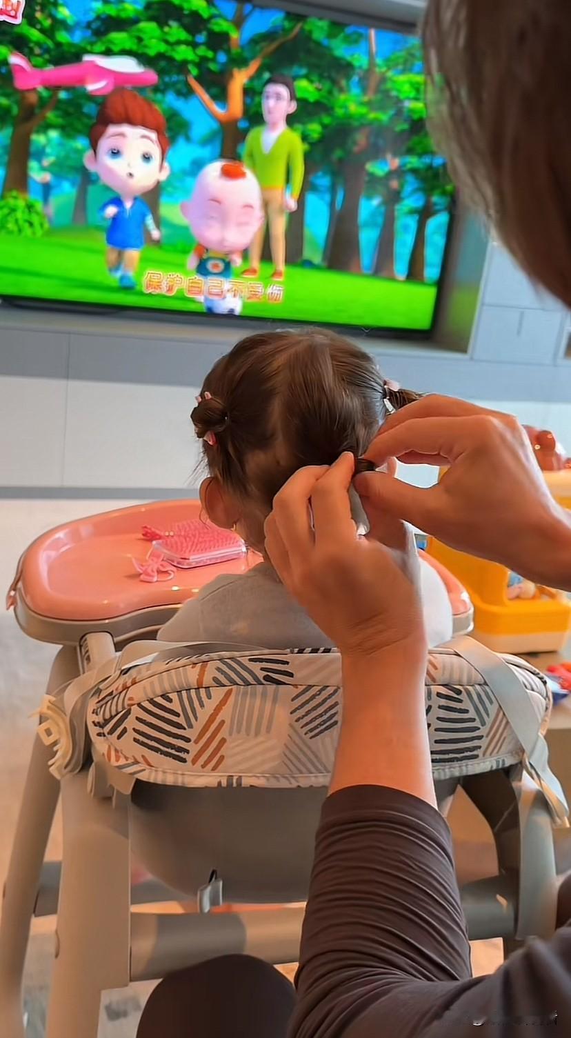 阿迪给女儿扎头发,女儿很听话,奶奶给凯莉扎头发,凯莉不让,回过头去跟奶奶摇头,谁能想到一个专心看动画片的小孩,换人了她也能感觉出来! 阿迪把凯莉接到杭州后,就开始了照顾女儿的起居,女儿不在就带妈妈到处逛逛,感觉他也没什么不良嗜好,就是爱玩爱爬山爱旅游,生活安排的明明白白的。