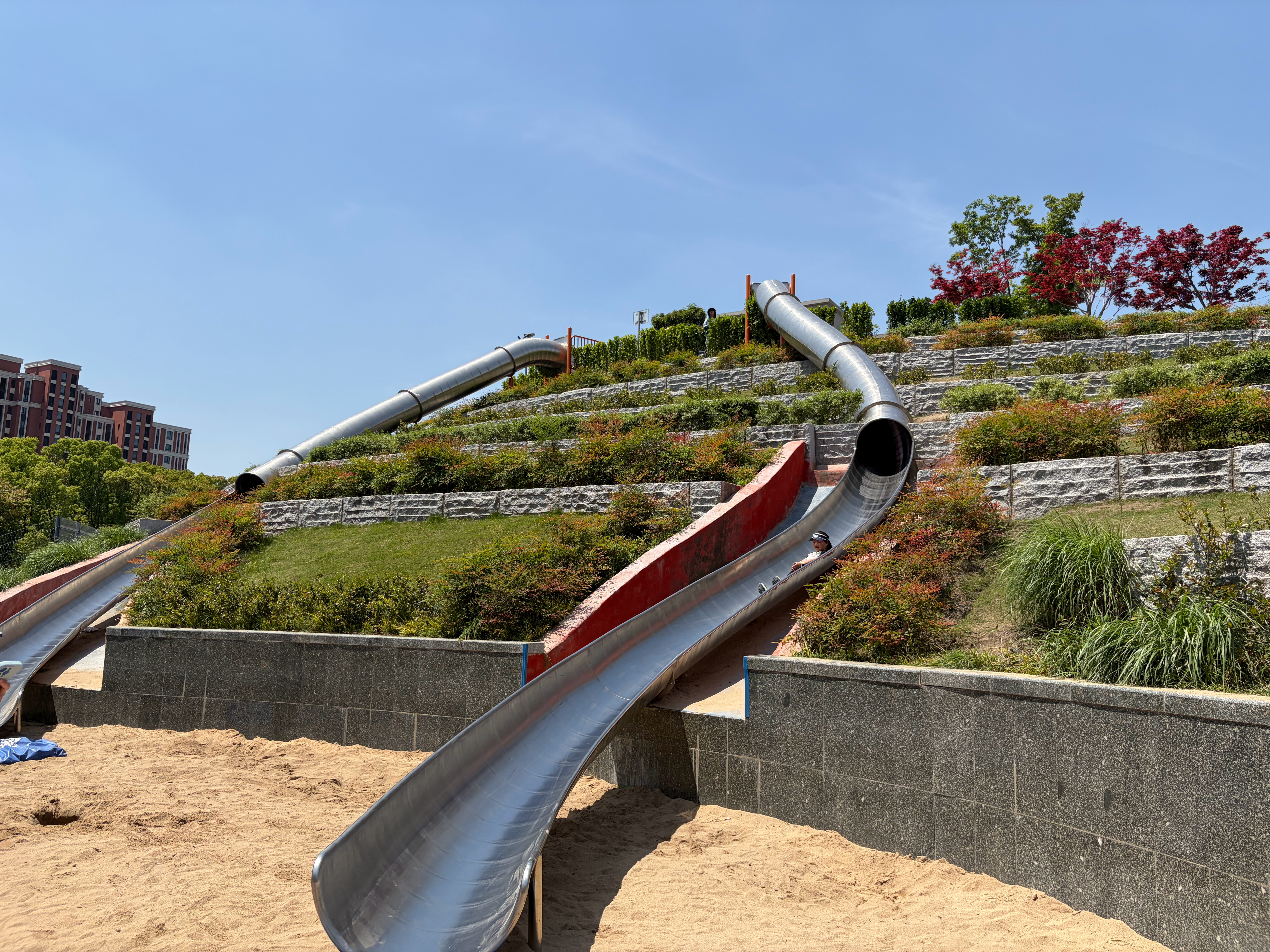 咳咳,带着我家小祖宗从这四层楼的滑滑梯,滑下来~小孩比大人胆子大啊