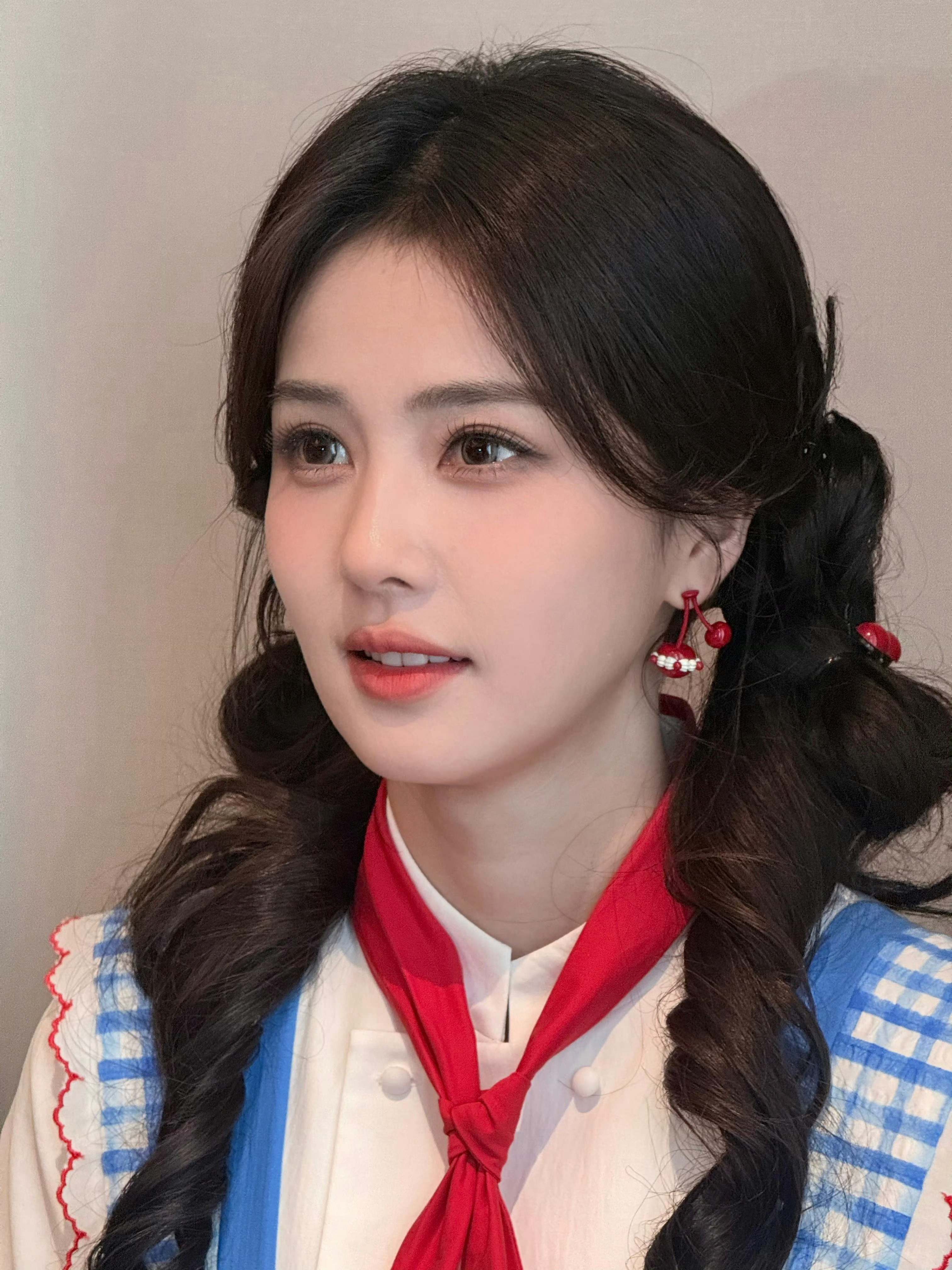 白鹿录制奔跑吧这几天的造型都很亮眼啊!!妆造都很完美了白鹿小厨娘