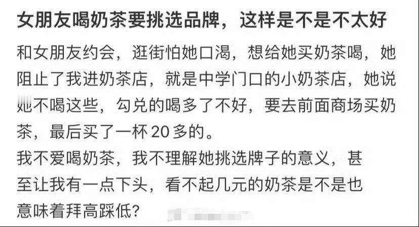 女朋友喝奶茶要挑选品牌,这样是不是不太好