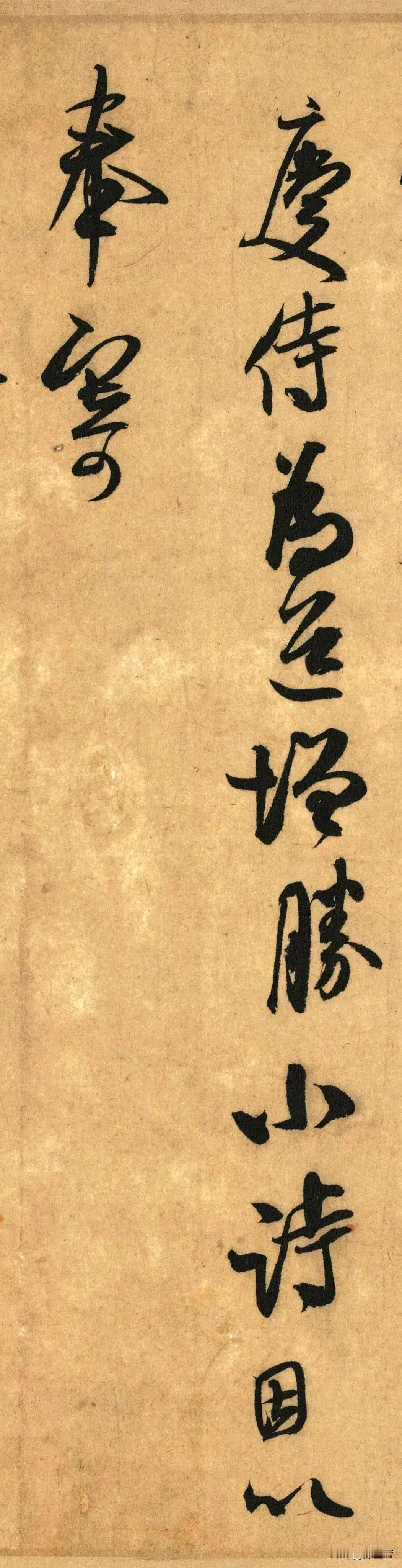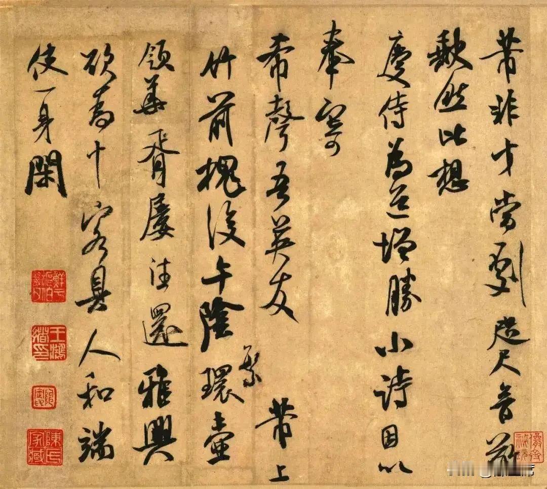 米芾行书《非才当剧帖》是他写给友人的信札。米芾这人恃才傲物,在这信里尽显无奈与牢骚。当时他被安排到事务繁重的地方任职,信中“非才当剧,文书山积”直白道出自己能力难以胜任这繁重事务,文件堆积如山的苦恼。 从书法上看,米芾笔势跌宕起伏,线条灵动多变。笔画粗细对比强烈,如“剧”“积”等字,粗笔厚重,细笔飘逸。结体欹侧多姿,打破常规的平稳,却又不失和谐。每个字仿佛有生命,在纸上翩翩起舞。这帖不仅是米芾情感的抒发,更是书法艺术的经典之作。
