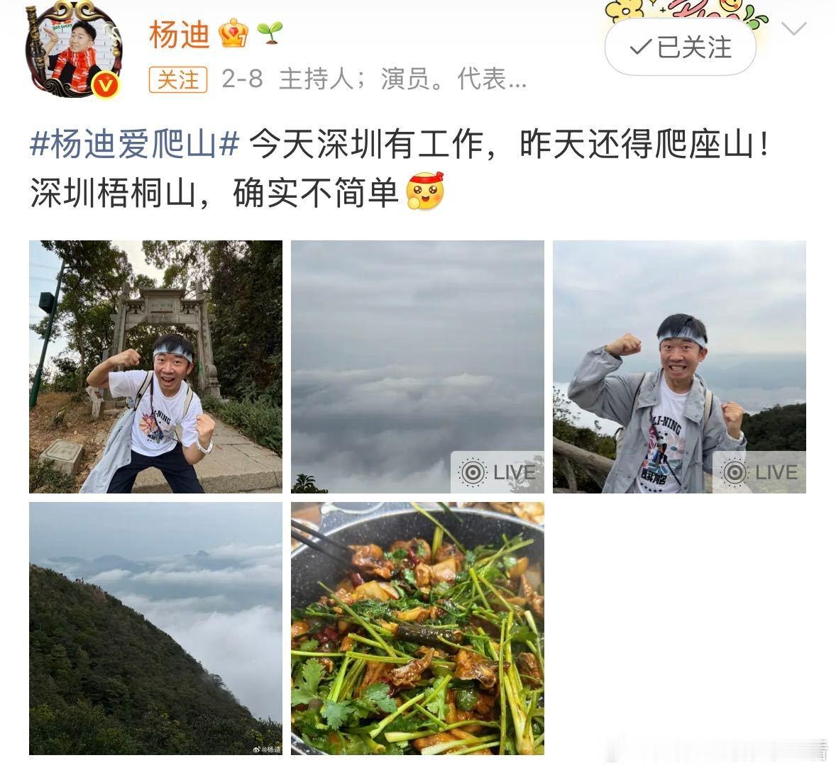 杨迪会因为爬山退圈杨迪自曝退圈原因你好星期六 丁程鑫问杨迪退圈因什么,杨迪秒答:爬山!小丁愣住,其他三人激动到跳脚。杨迪对爬山的执念,比综艺还认真。
