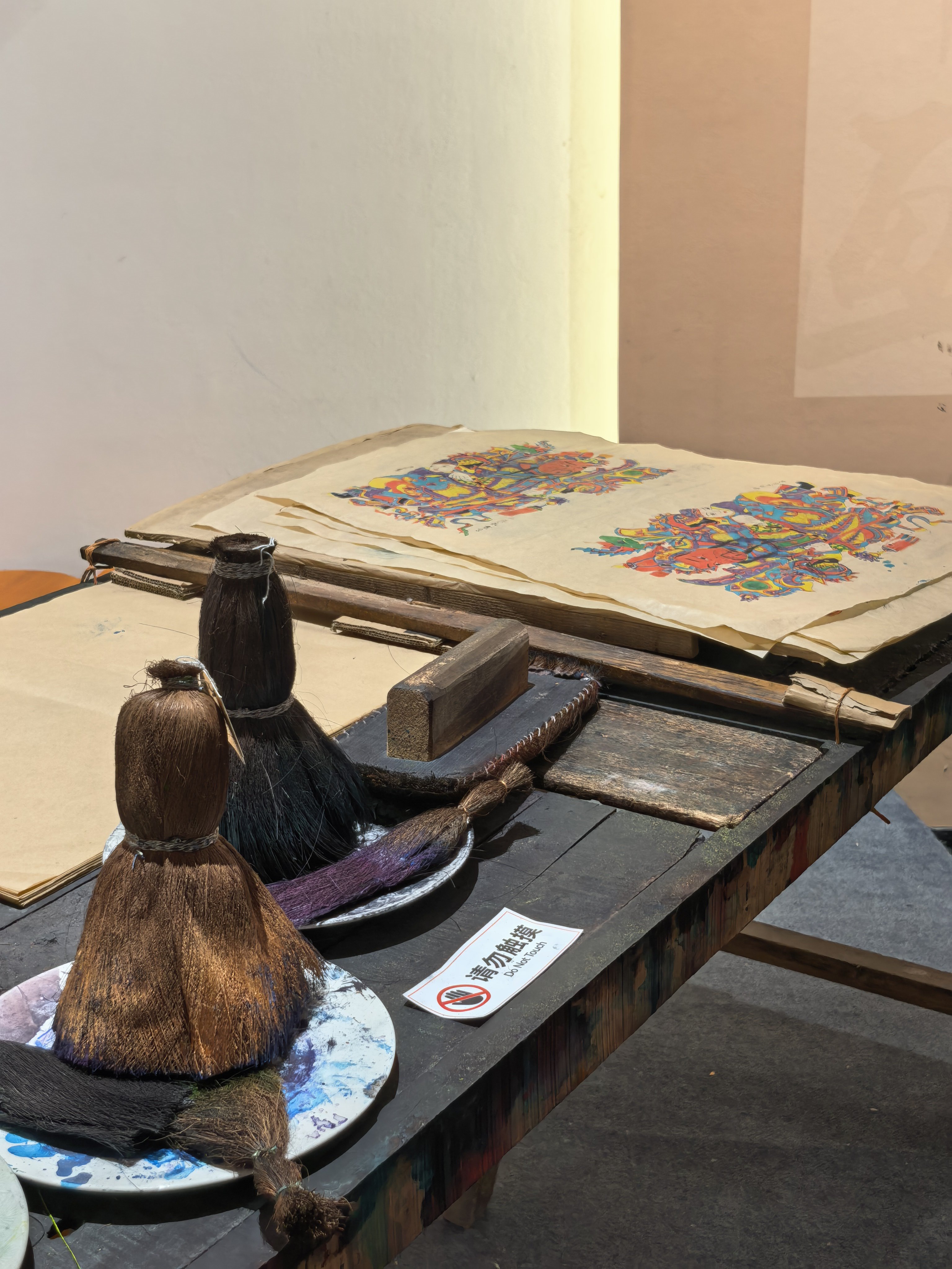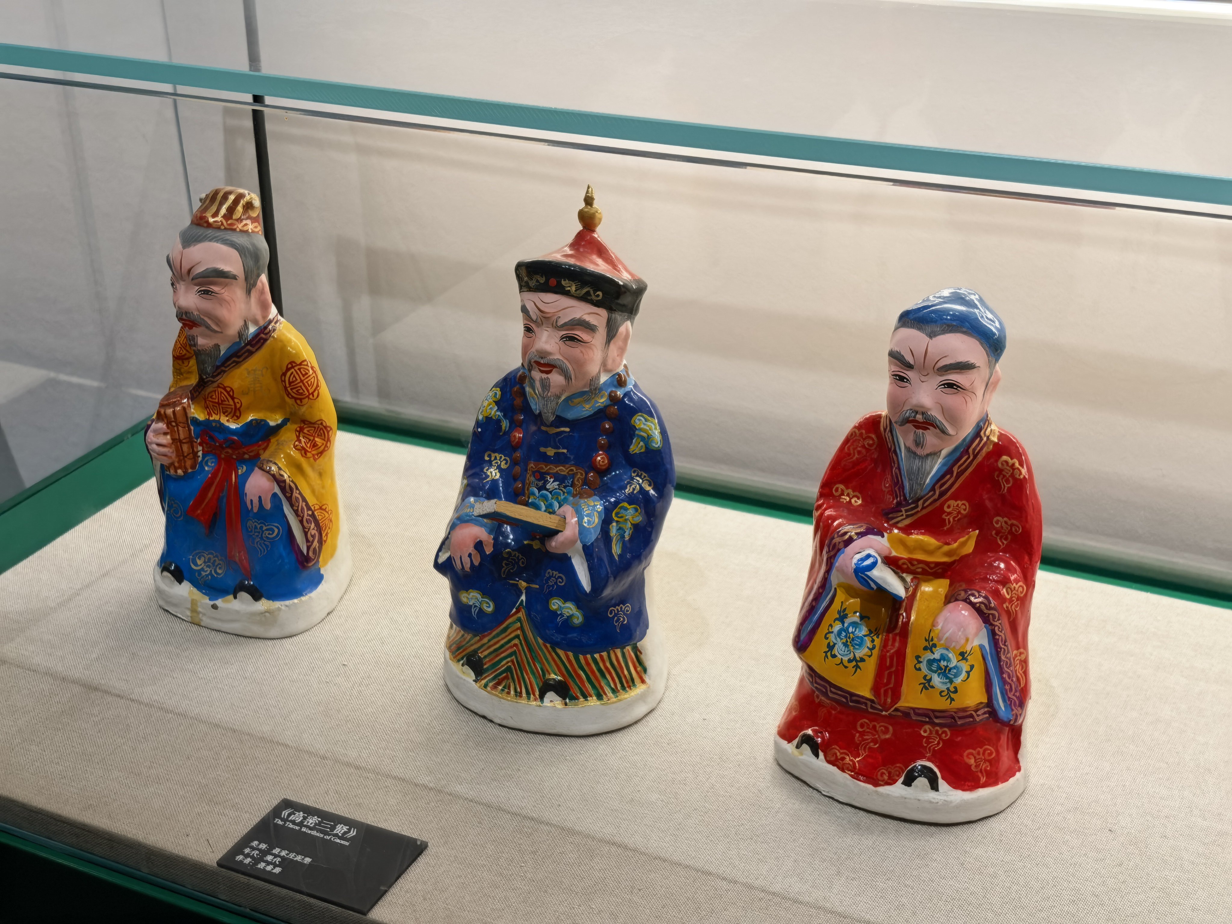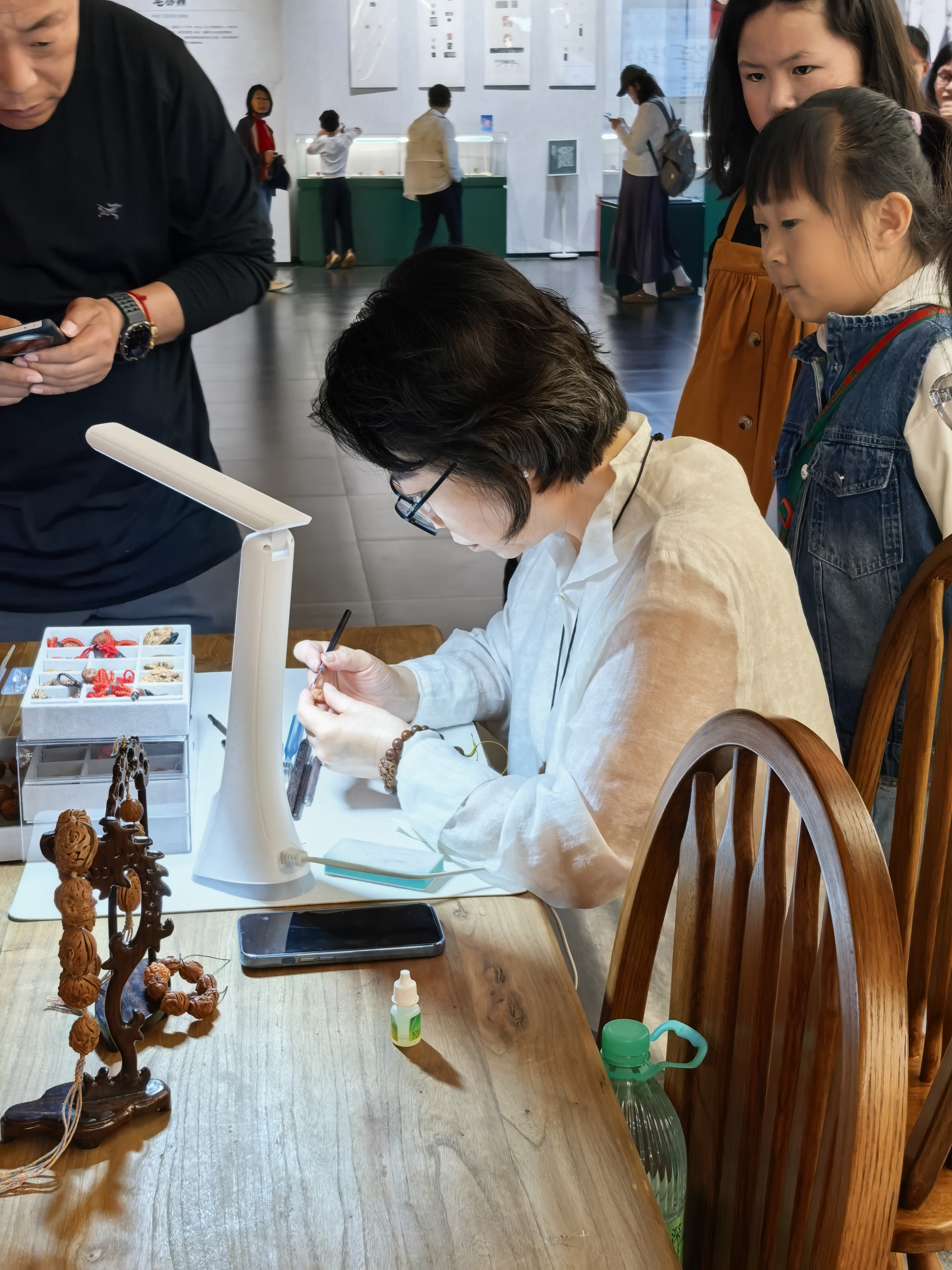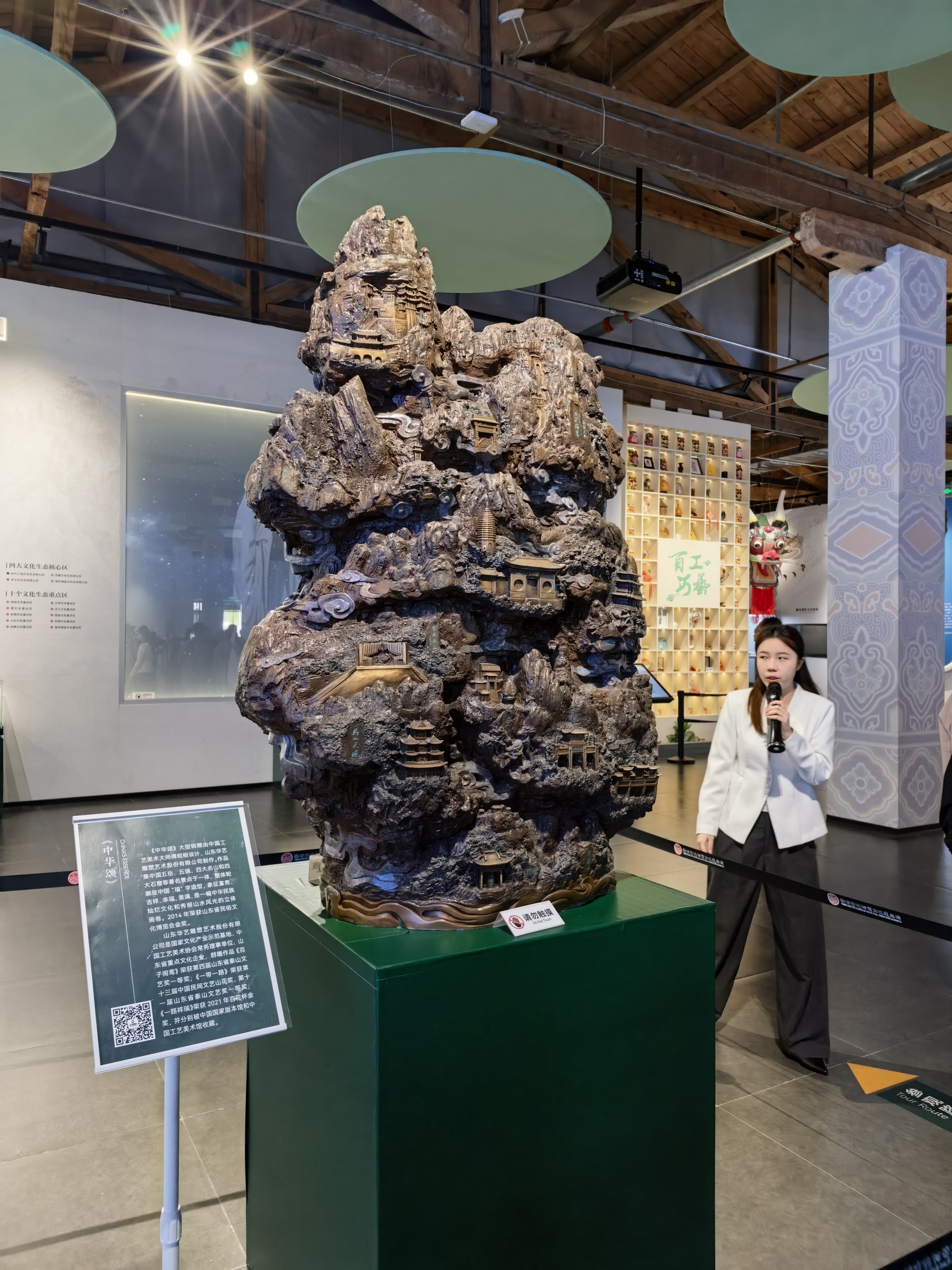 入口处有《中华颂》大型铜雕,由中国工艺美术大师傅绍相设计,集中国五岳、五镇、四大名山和四大石窟于一体,外观呈“福”字造型,象征幸福吉祥,是展馆文化符号之一。这里传统工艺类非遗是太丰富了,潍坊风筝、聂家庄泥塑、年画、潍坊核雕、金石文化、高密剪纸、昌邑丝绸、潍坊刺绣等等,还有传统音乐与舞蹈,传统武术以及体育健身。现场还设8个大师工作室,非遗传承人现场制作潍坊风筝、老茂花灯、潍坊刺绣等非遗作品,供游客观摩。当然,最重要的还有传统美食与物产,展示潍坊朝天锅、鸡鸭和乐、潍坊肉火烧,以及青州隆盛糕点、潍县恒盛斋糕点等传统糕点,还有寿光卤水晒盐技艺和各县市区非遗制酒技艺。其中,八仙桌陈列“四四席”确实太惊艳了,口水直流。名动齐鲁e路前行你好世界风筝都龙象之城山海潍坊 潍坊·潍坊市非物质文化遗产馆
