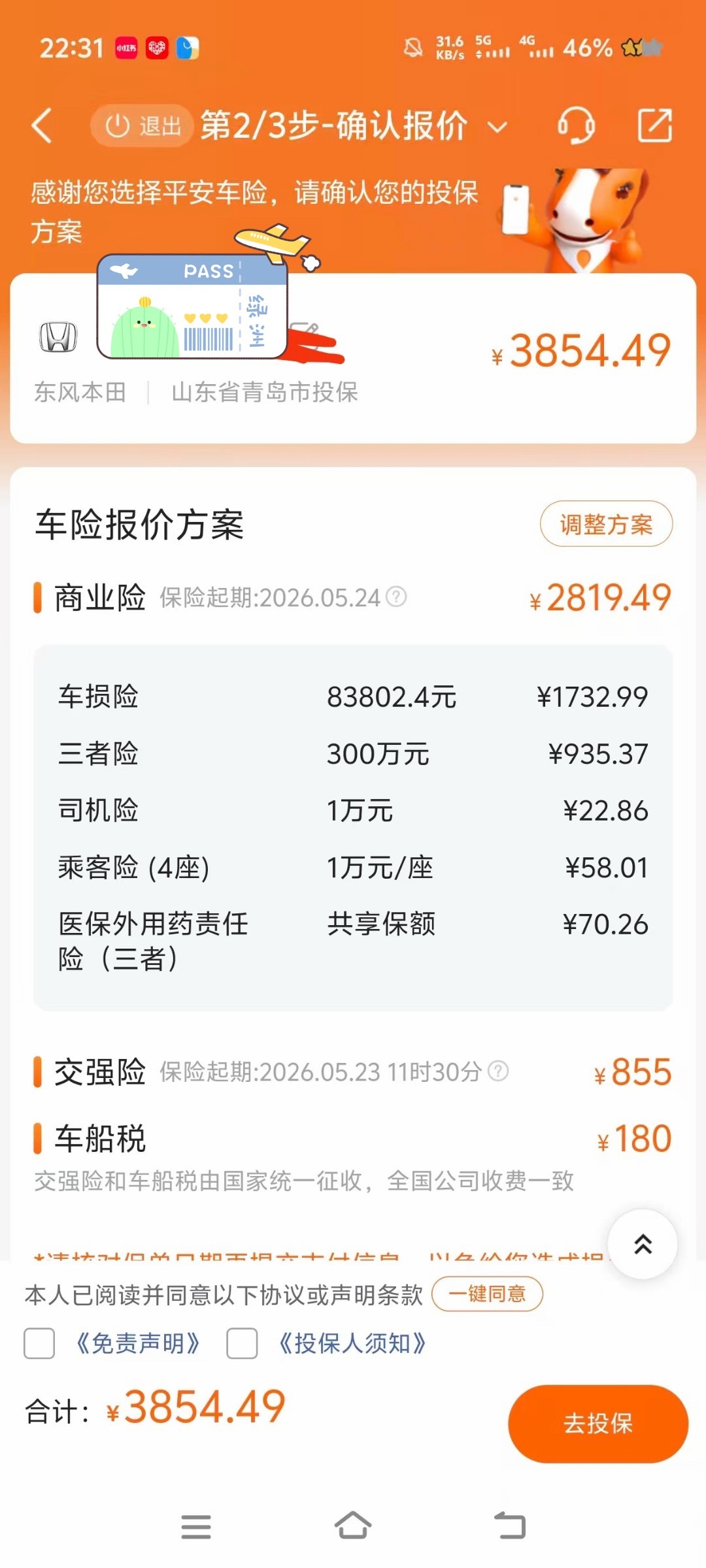 24年本田思域续保,3855元/年,粉丝直呼好贵啊!