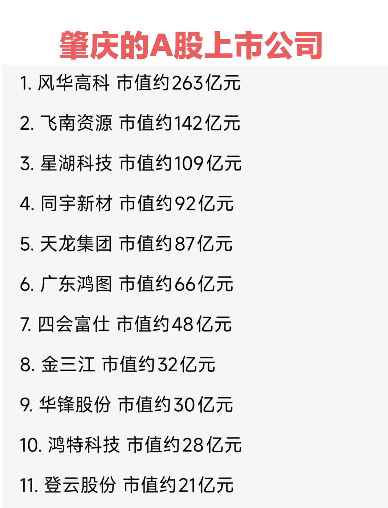 肇庆作为珠三角城市经济发展还是比较好的,目前一共有11家A股上市公司,数量超过整个粤西。 肇庆市的上市公司主要集中端州、鼎湖、高要、四会这些发达地区,山区四县怀集、封开、德庆、广宁就没有上市公司了。