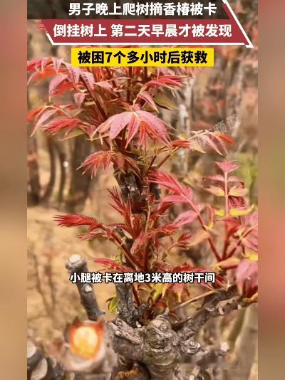 我的妈呀!北京顺义这位大哥太拼了!就为了一口新鲜香椿,硬生生把自己倒挂在3米高树上整整7小时!头朝下、脚朝上,妥妥的倒挂金钩造型,被村民发现时,整条腿已经紫得像茄子,看着都揪心!这哪是摘香椿,简直是拿命解馋! 事情就发生在前几天夜里,这位大哥觉得野外树上的香椿比菜市场更香,趁着天黑偷偷爬树采摘。万万没想到树杈年久不结实,脚下突然打滑,整个人瞬间坠落,右腿偏偏死死卡在两根树杈中间,进退不得,就这么大头朝下悬在半空。 这一挂就是7个多小时!从深夜一直熬到凌晨五点多,夜里天寒地冻,他悬在树上动弹不得,想呼救也发不出声音,只能硬扛着冻、忍着疼。直到早起村民出门遛弯,远远看见树上挂着个黑影,走近一看吓坏了,赶紧拨打119求助。 消防员火速赶到现场时,大哥脸色惨白,被卡住的腿部又红又肿,浑身冻得不停发抖。医护人员都急得不行:再晚一会儿,血液循环彻底堵塞,引发挤压综合征,这条腿大概率都保不住! 随后消防员专业施救,用工具小心翼翼撑开树杈,众人合力稳稳托住大哥腰部,缓慢将人安全救下。120急救车早已在现场等候,第一时间送往医院救治,万幸没有生命大碍。 其实爱吃香椿完全能理解,但超市菜市场10块钱就能买一大把,回家洗净炒鸡蛋、拌凉菜都鲜香入味,根本没必要冒着生命危险爬野树。野树枝干脆弱不承重,一旦失足坠落,轻则骨折受伤,重则危及性命,真的太不值当了。 这件事也给所有人敲响警钟:做人别贪那一口野味、一点小便宜,更别盲目逞能冒险。平平安安过日子,比什么山珍海味都重要。 你身边有没有见过为了一口吃的,铤而走险犯糊涂的人?评论区聊聊,也转发给家里老人亲友,互相提个醒! 男子为摘香椿倒挂7小时 嘴馋的代价有多险 平安比啥都重要 信息来源:河南都市频道。 图片来源:北京日报、河南都市频道,如有侵权,请联系删除。
