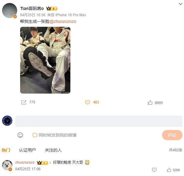 Zhuo回应Tian鞋底照Tian赛后发鞋底照TES战胜NIP