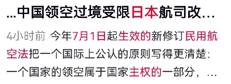 底牌亮全!中国领空权在手,日本经济命脉遭锁喉 7月1日《民用航空法》正式生效,大国主权再添铁律!日本全日空、日航85%的欧洲航线,唯一捷径就是穿越中国领空,这是距离最短、成本最低的黄金航路。 俄方领空早已关闭,南线绕行等于自断财路,航程多出4000公里,成本直接翻倍,日本别无选择。 这张王牌,合法合规!一旦审批收紧,东京飞欧洲机票暴涨3-5成,精密货运供应链瞬间断裂,医药、汽车等支柱产业将遭致命打击。 高市早苗再叫嚣也无用,日本投鼠忌器。中国不主动惹事,但捍卫主权底线寸步不让,这就是大国底气! 对此,你怎么看? 中国领空主权 大国博弈 日本经济 民航新规