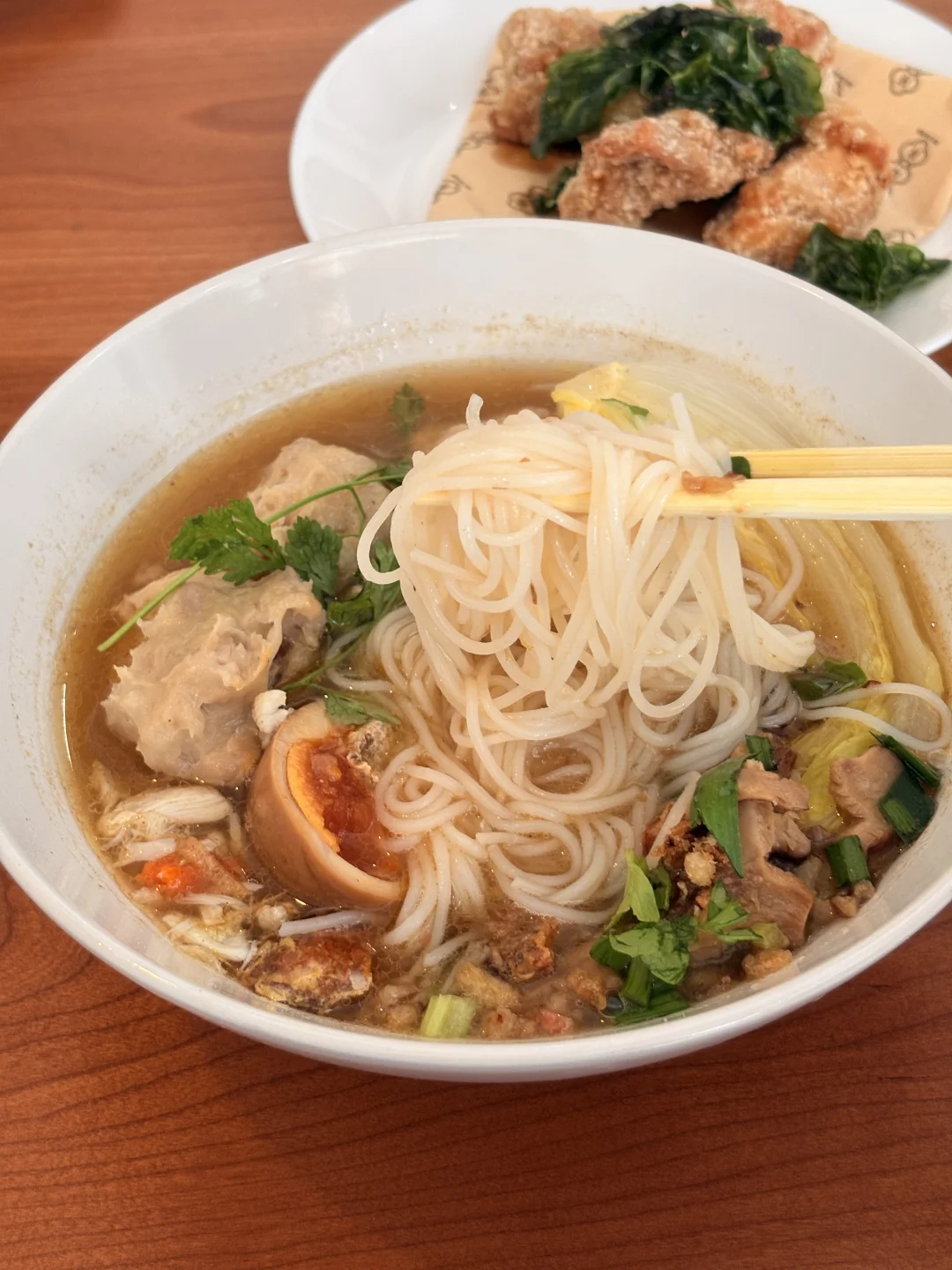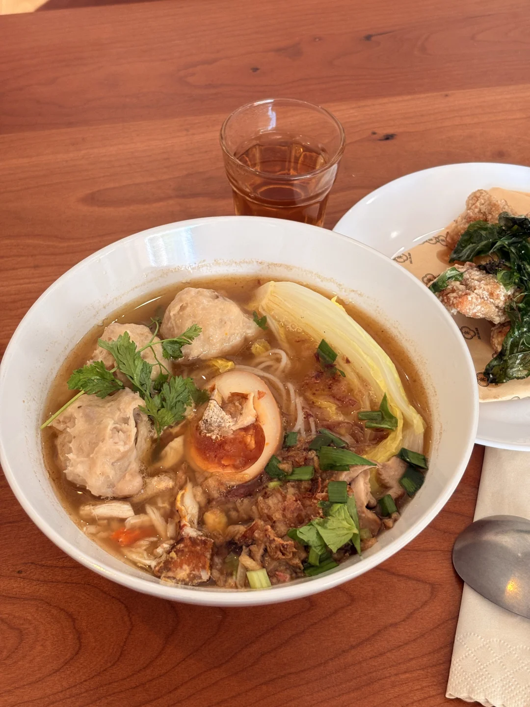 啊终于来吃想很久的樹仔腳冰店,天气好好就是要吃刨冰,完全台湾古早味! 有点奢侈的一个人点了蟹肉芋头贡丸米粉汤、盐酥鸡和碱粉冰,完全是我爱的味道,喜欢💕 【碱粉冰】淋上微苦的黑糖,刚好中和了甜腻 最让我惊喜的是【芋头贡丸】,肉质扎实饱满,还有绵密软糯的芋头,口感超惊艳 粉汤味道醇厚入味,要是米粉可以换成越南米粉就更好啦 【盐酥鸡】也很不错,酥酥脆脆~