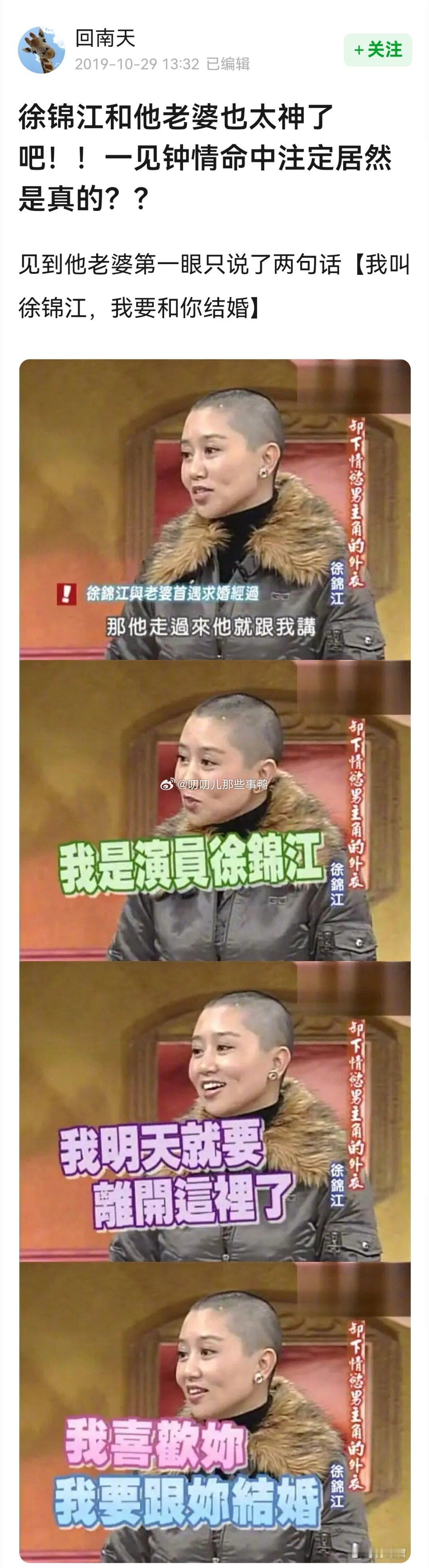 19年的老帖,今天被洛阳铲了→徐锦江见到他老婆第一眼只说了两句话【我叫徐锦江,我要和你结婚】,这大概就是命中注定的缘分~❤️❤️