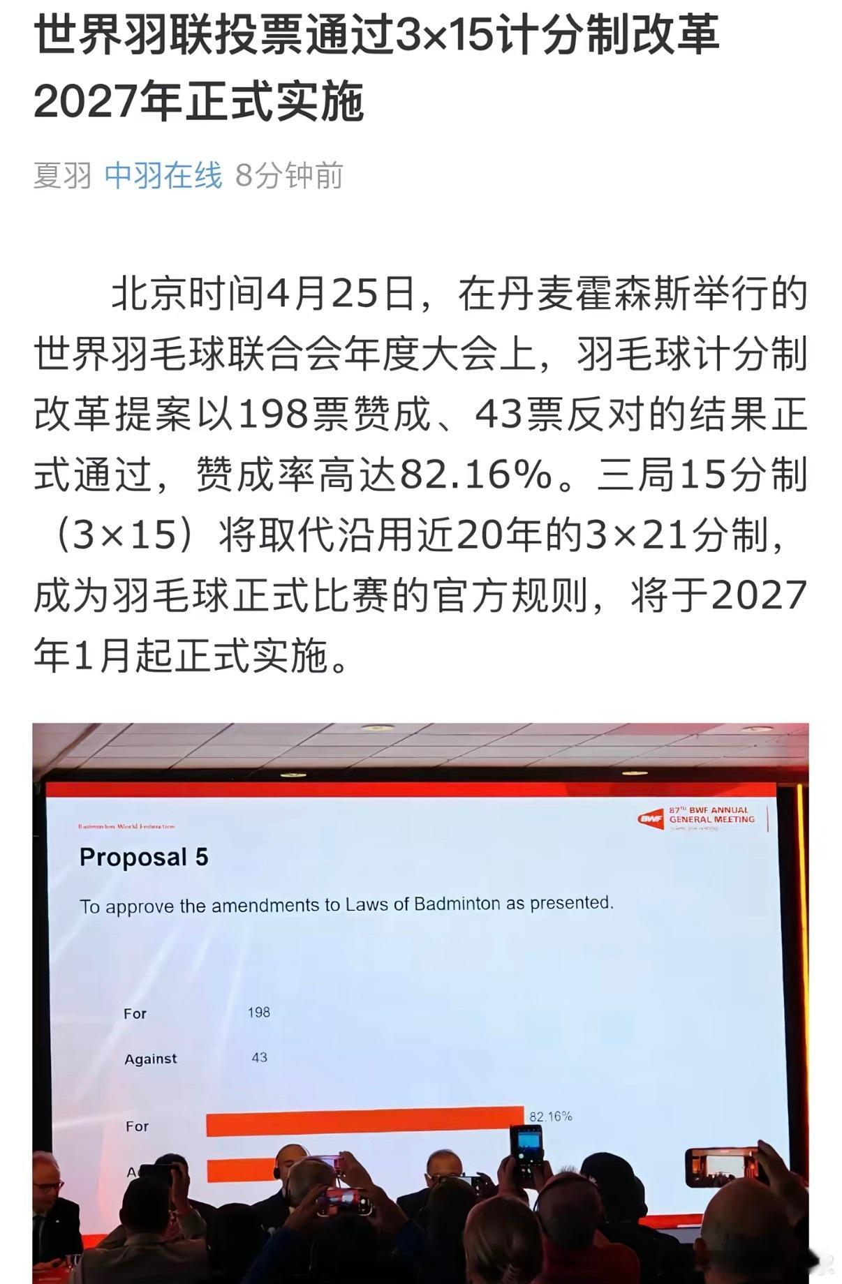 支持!单场比赛时间缩短、运动员从第一分起就必须高压得分,观赏性大大提高羽毛球取消21分制
