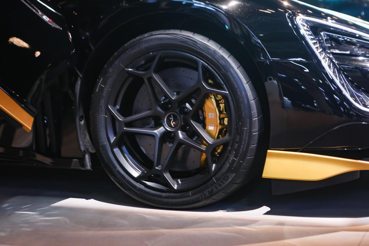 外观基于U9“时空之门”家族语言进行全面赛道化升级:前脸封闭式设计搭配C字形星空大灯,前机舱盖双贯通设计配合底部碳纤维前铲,车尾配备大尺寸碳纤维鹅颈式扰流板与双层扩散器,带来顶级空气动力学下压力。车身侧面采用碳纤维单体壳座舱,碳纤维用量超110kg,轮胎为与佳通联合定制的GitiSport e·GTR² PRO半热熔轮胎,国内首款设计时速超500km/h的赛道轮胎。
