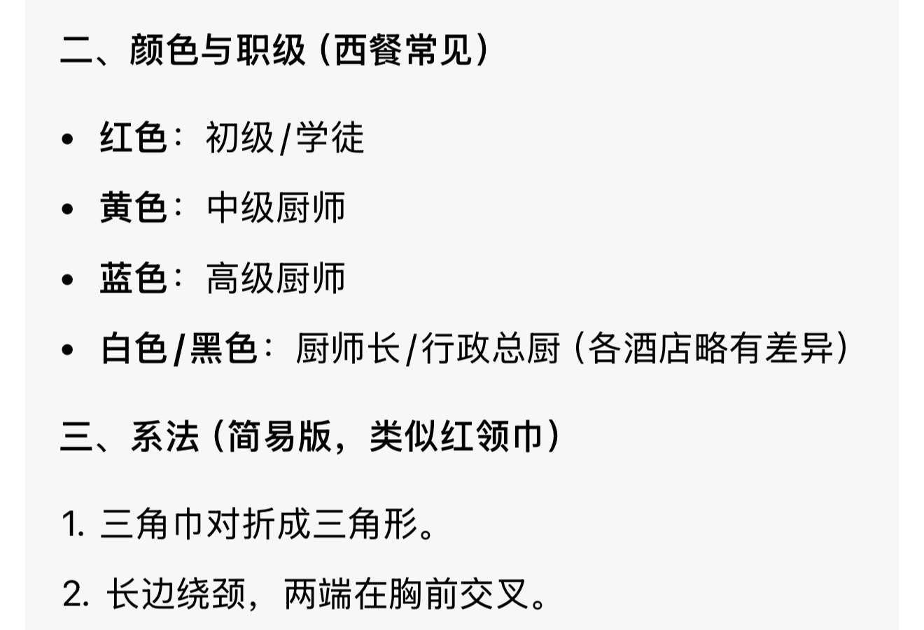 初级厨师就是带红色领巾的,简易版就是类似红领巾。