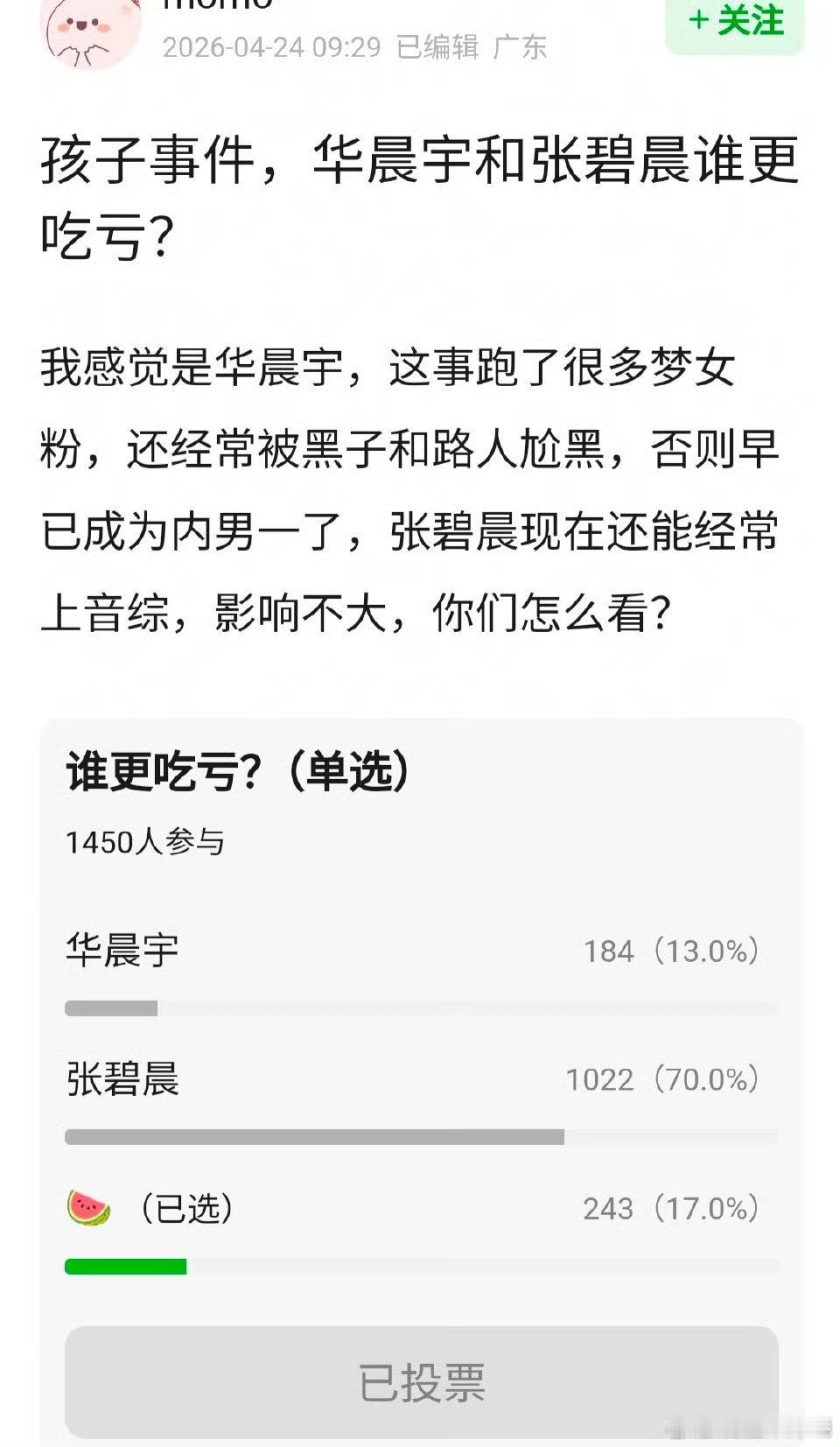 网友讨论孩子事件,华晨宇和张碧晨谁更吃亏?