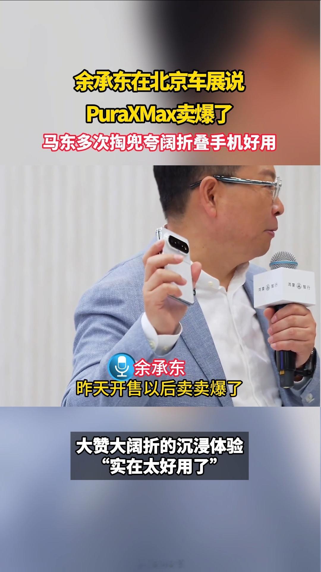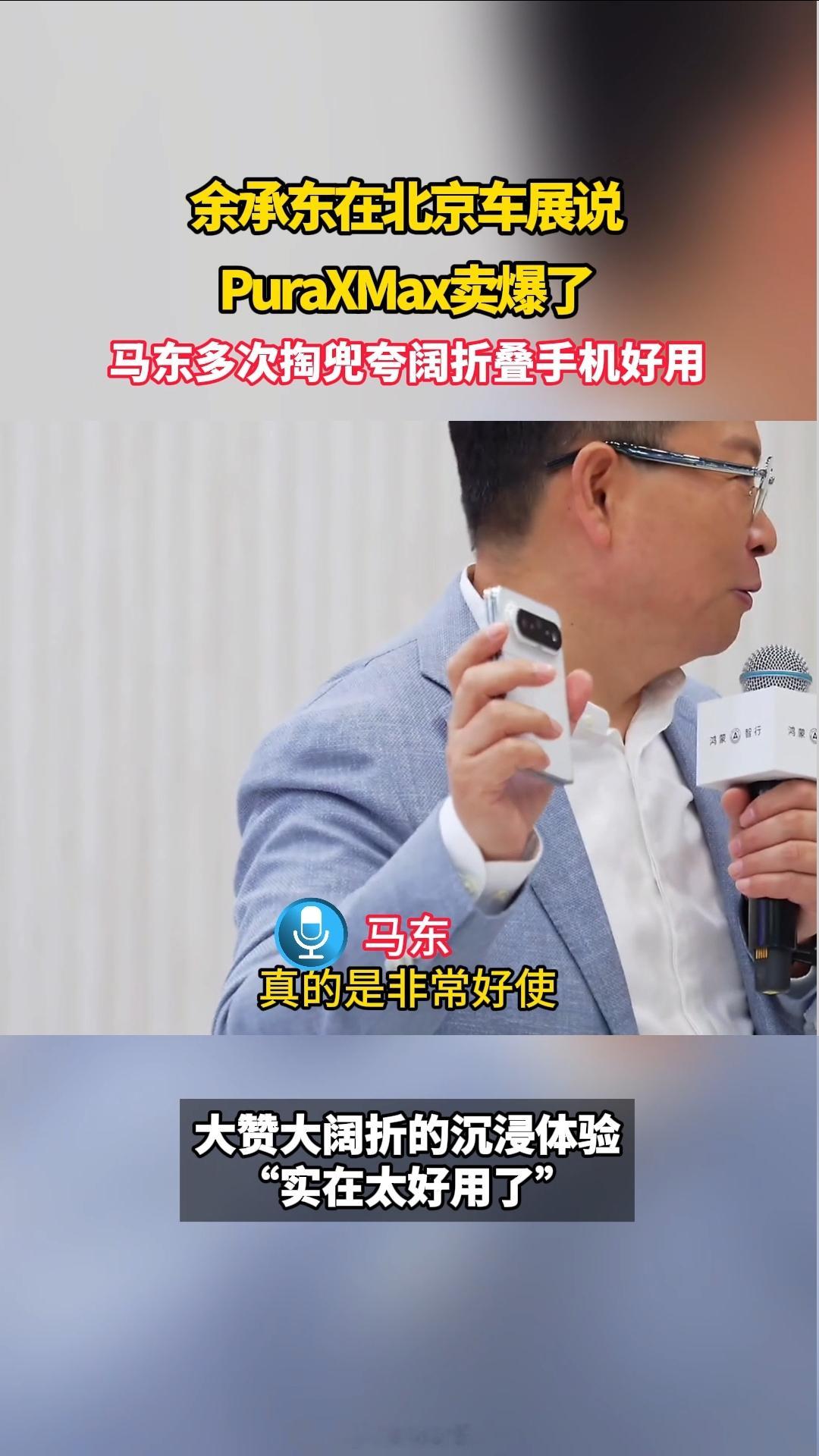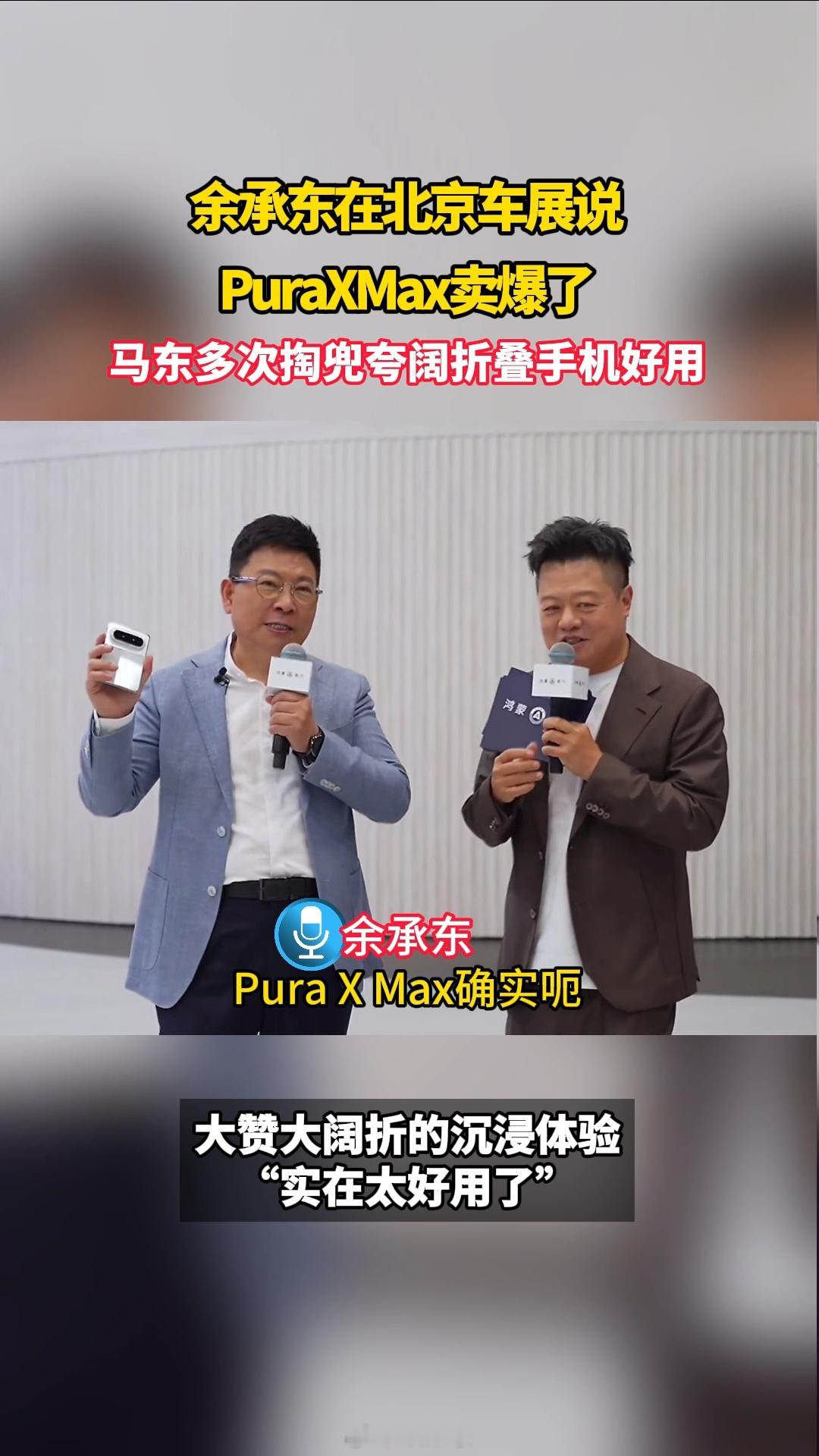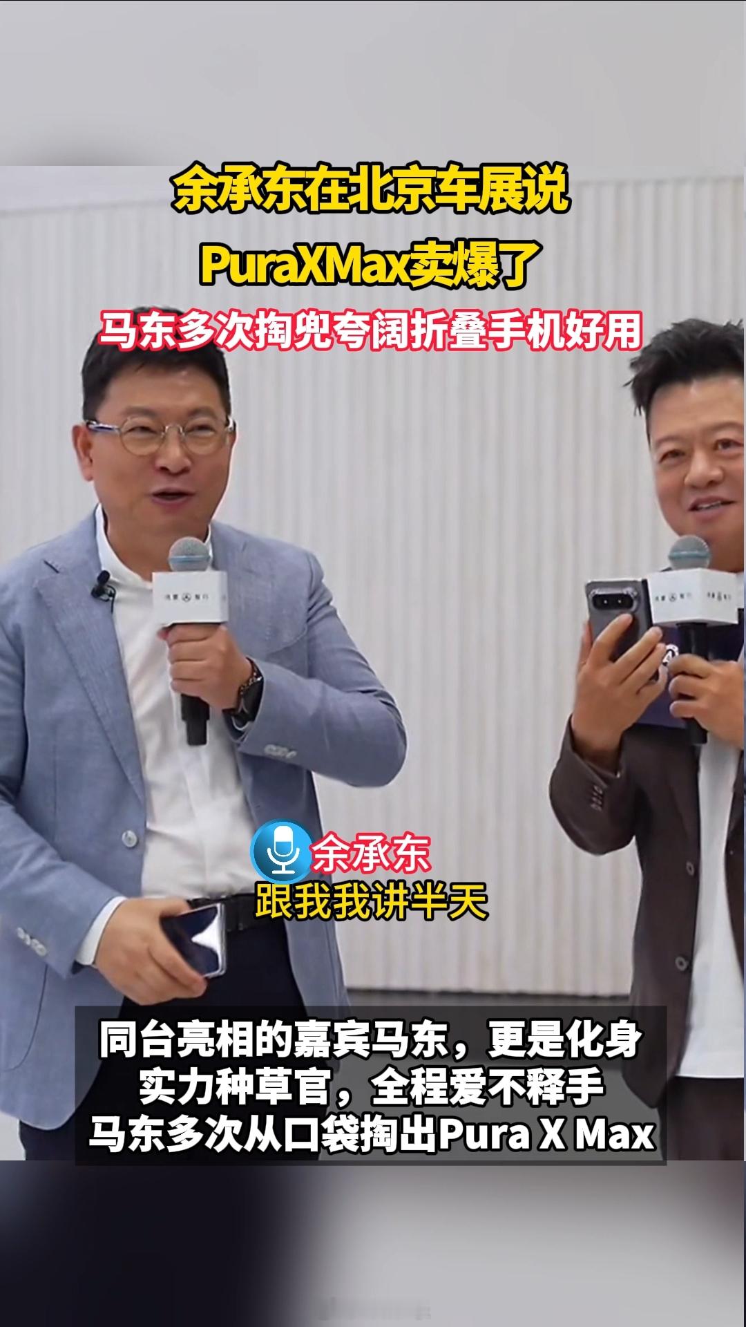 马东多次掏兜夸阔折叠手机好用余承东在北京车展说PuraXMax卖爆了 据说这手机首销抢空了?今天直播活动余承东透露阔折叠首销卖爆!现场马东也疯狂安利阔折叠好用!