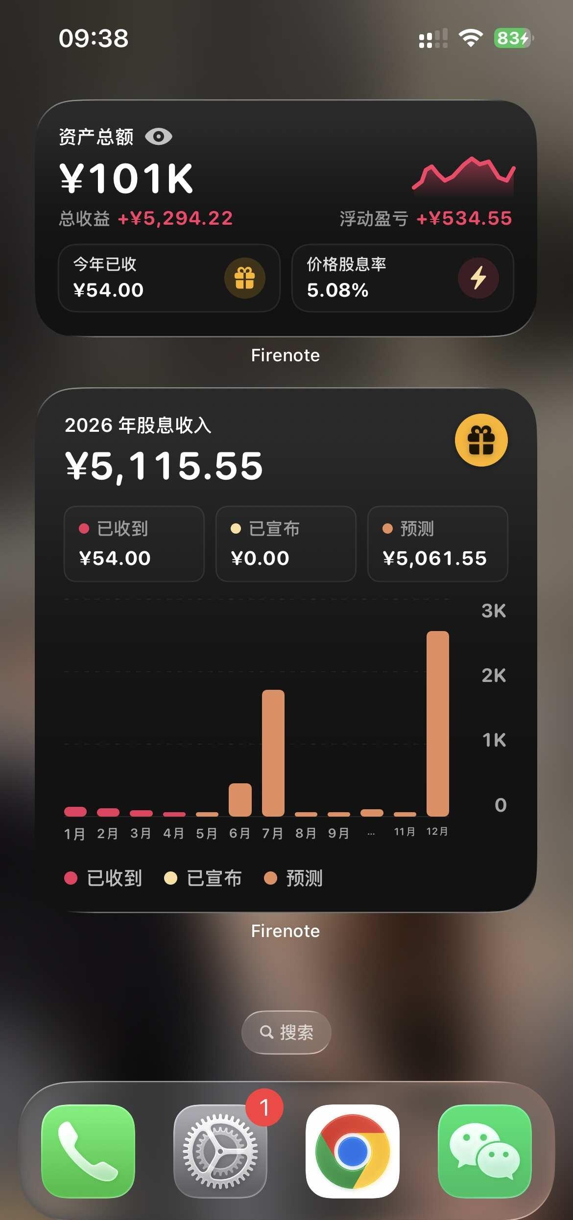 股息跟踪小组件🤩 股息投资 独立开发者 被动收入 Firenote 小众APP 我的理财日记