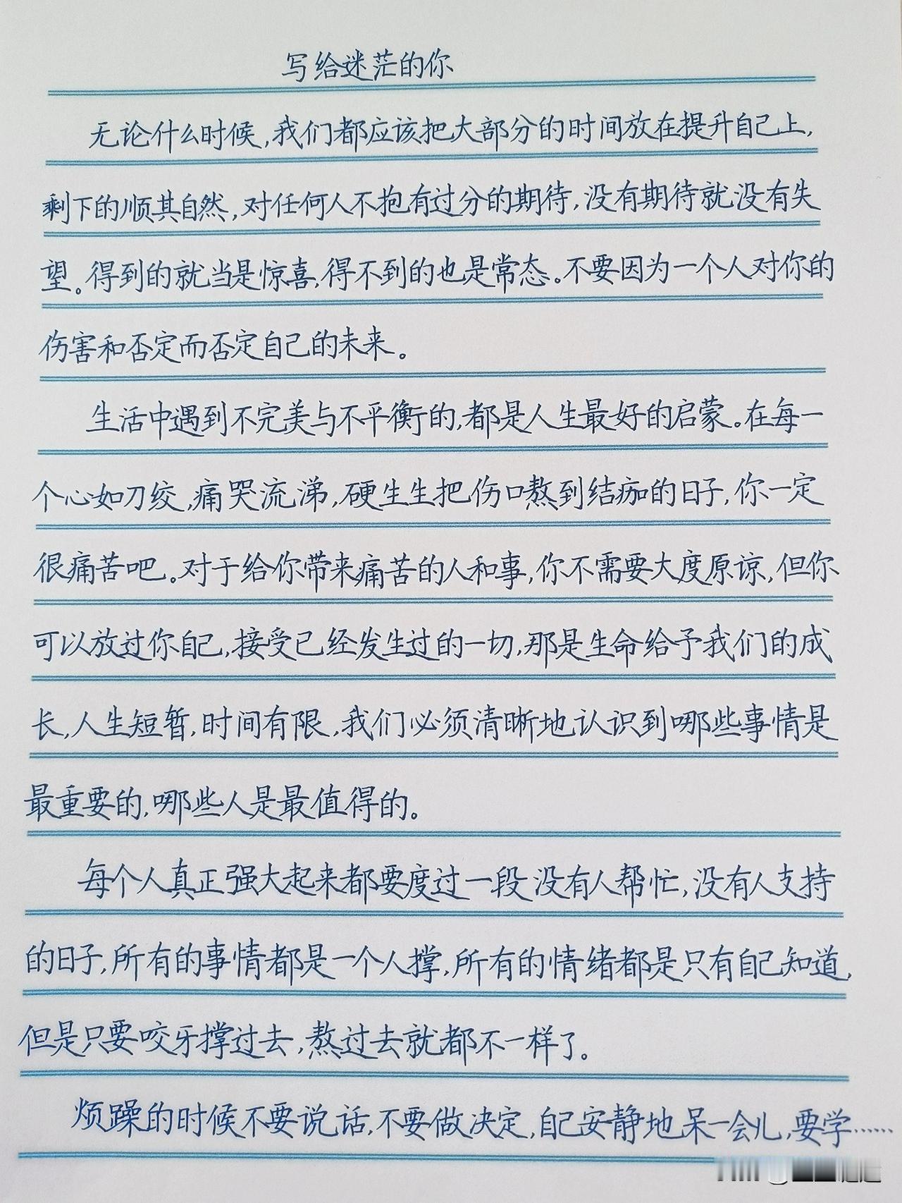 写给迷茫的你,要学会自己消化掉情绪,无论什么时候,我们都应该把大部分的时间放在提升自己,剩下的顺其自然,对任何人不抱有过分的期待,没有期待就没有失望,得到的就当是惊喜,得不到的也是常态。不要因为一个人对你的伤害而否定自己的未来。 生活中遇到不完美与不平衡的,都是人生最好的启蒙。在每一个心如刀绞,痛哭流涕,硬生生把伤口数到结痂的盱,你一定很痛苦吧。平复情绪小技巧 调整情绪小技巧 情绪自愈小技巧