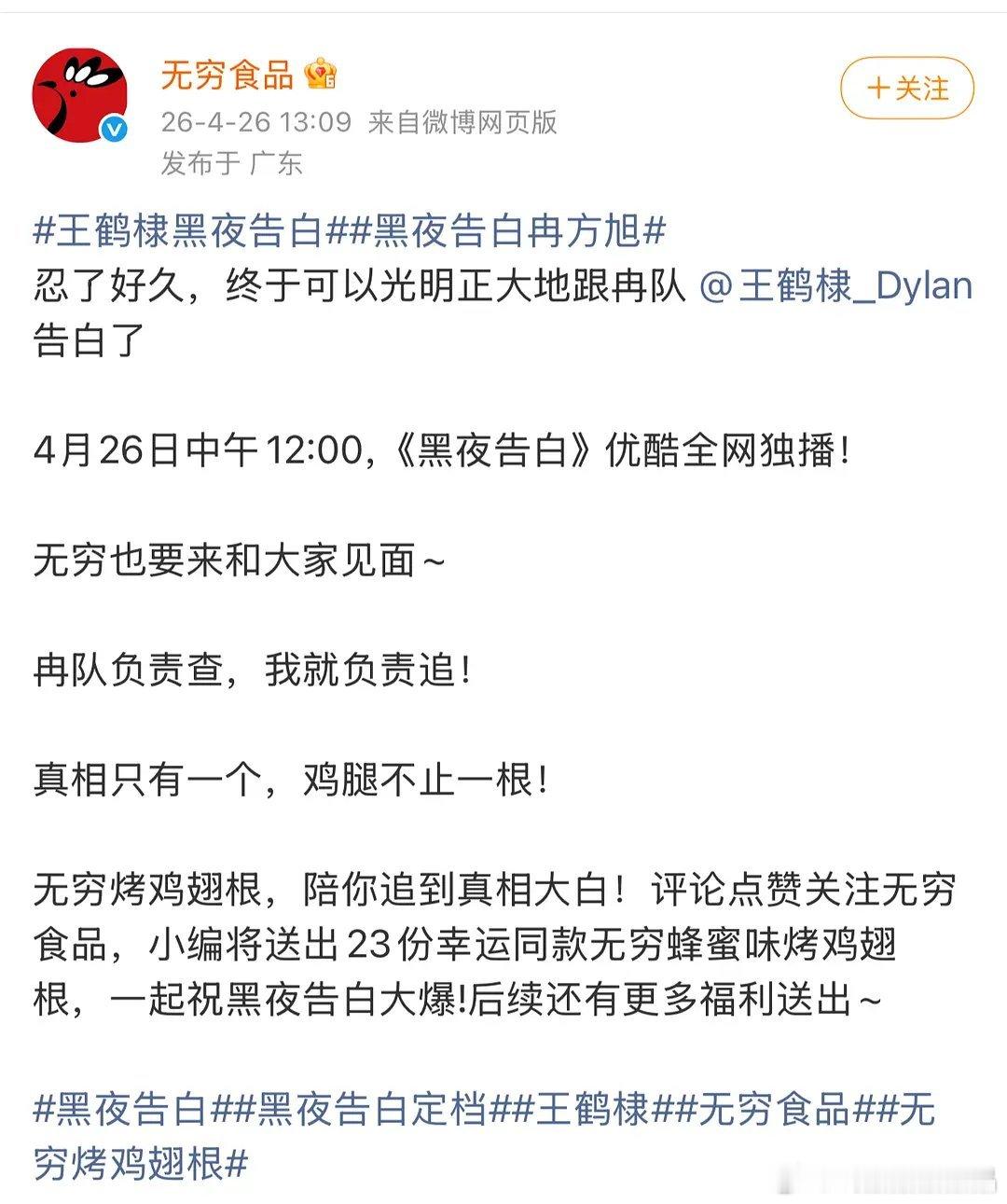 王鹤棣第一部原创悬疑剧开局就7广,自带2代言投广,还有一半广告商发文专门说是为了王鹤棣而来。王鹤棣黑夜告白