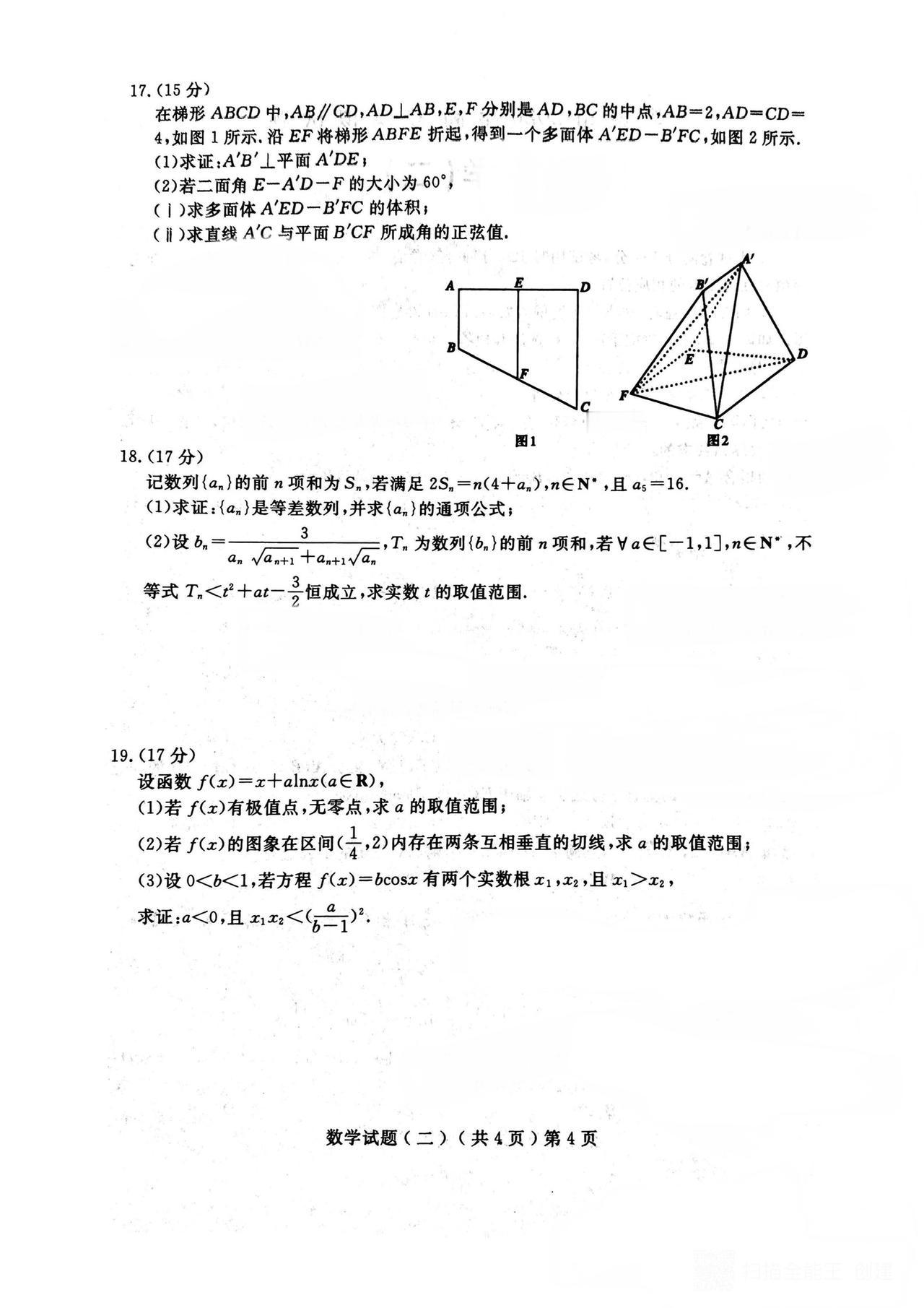 陕西省商洛市2026届高三4月二模考试数学试题及答案