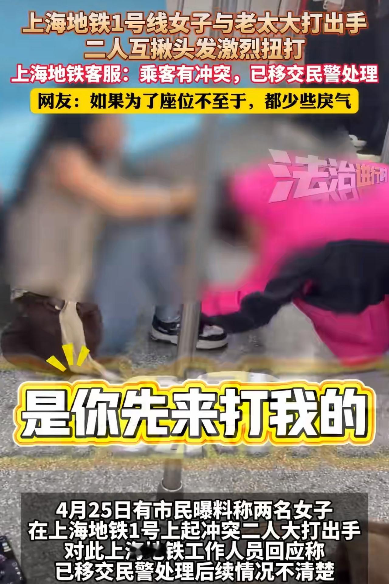 上海地铁1号线上有网友拍下一段视频,视频里那场面,简直比动作电影还激烈,谁能想到这俩打得不可开交的主角,竟然是为了一个座位。 事情的起因特别简单,就是车厢里空出来一个位置,32岁的曾女士和66岁的吴大妈几乎是同时看上了这个座位,本来嘛,公共交通上谁先坐下算谁的,或者互相谦让一下也就过去了,可这两位倒好,谁也不肯退让半步,几句话没说拢,火气“蹭”地一下就上来了,从最初的互相指责,迅速升级为肢体冲突。 现场视频显示,两人完全不顾周围乘客的目光,直接扭打成一团,她们互相揪着对方的头发,像拔河一样往两边拽,另一只手也没闲着,对着脸和上身就是一顿乱挥,两人的身体多次撞到车厢扶手和座椅上,伴随着高分贝的尖叫和不堪入耳的咒骂,周围乘客吓得纷纷后退,生怕被误伤,有乘客试图上前拉架,好不容易把两人分开,结果还没等喘口气,两人又因为几句口角再次扭打在一起,反复了好几次。 上海轨交警方接到报警后迅速赶到现场,将两人分开,经调查,这确实是一起因争抢座位引发的肢体冲突,目前,警方已经对这起事件行政立案,将依法进行处理,这意味着,两位女士不仅要为自己的冲动付出身体上的代价,还可能面临法律上的处罚。 为了一个座位,把自己的体面和形象全撕碎了,真的值吗?一个三十出头,一个年近七十,横跨了三十多年的人生阅历,在一个空座位面前,仿佛都清零了,公共场合不是自家客厅,更不是撒泼闹事的地方。 不管是年轻人还是老年人,都该遵守公共秩序,学会控制自己的情绪,千万不要觉得只是打几下没什么大不了,一旦留下违法记录,对自己的生活、工作都会造成不好的影响,这世上最难抢回来的,不是一个座位,而是被冲动撕掉的脸面,和众目睽睽之下丢掉的体面。 事件来源:北京时间