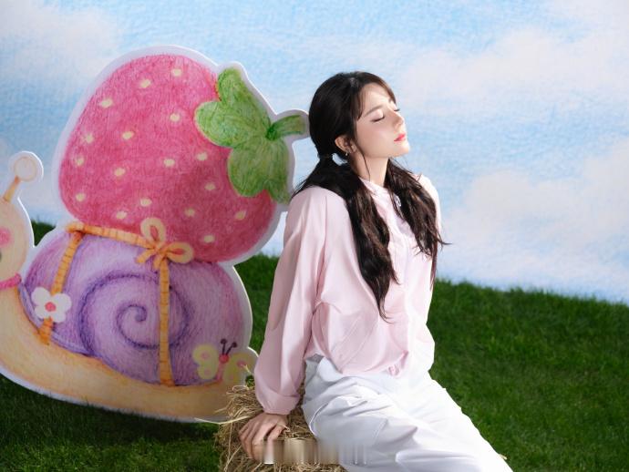粉色系套装双马尾、甜美可爱——迪丽热巴。每日明星美图分享浪姐三公李唐王朝