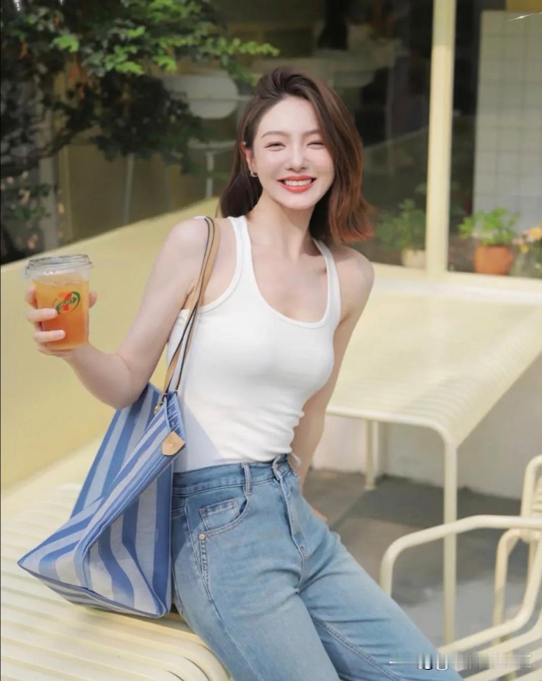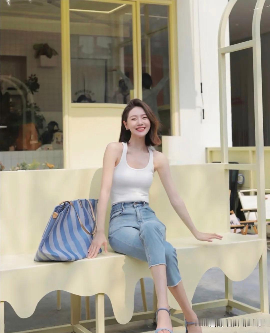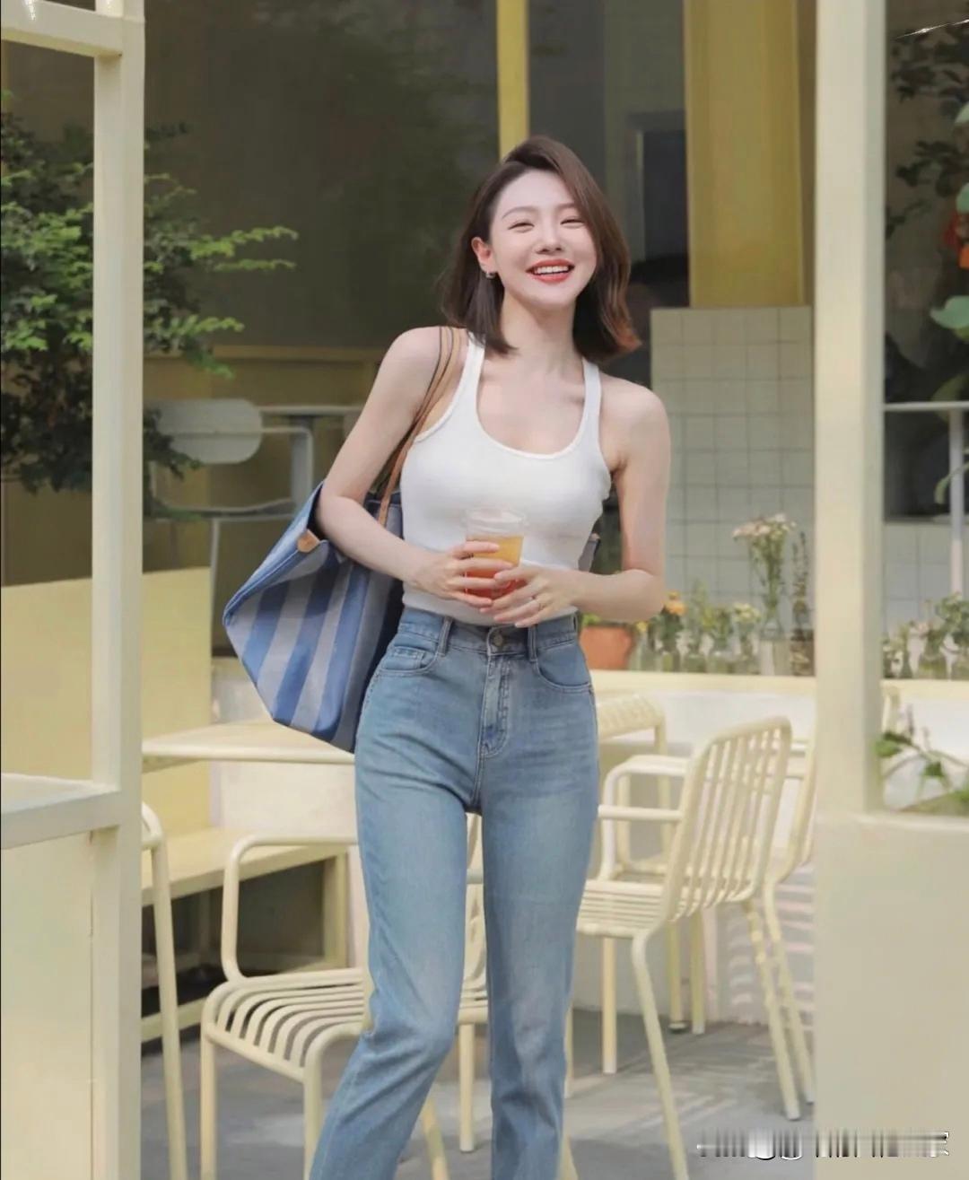 夏日清爽穿搭,白色背心+牛仔裤,元气满满的一天!🌞👗👖当然要记录啊日常好穿