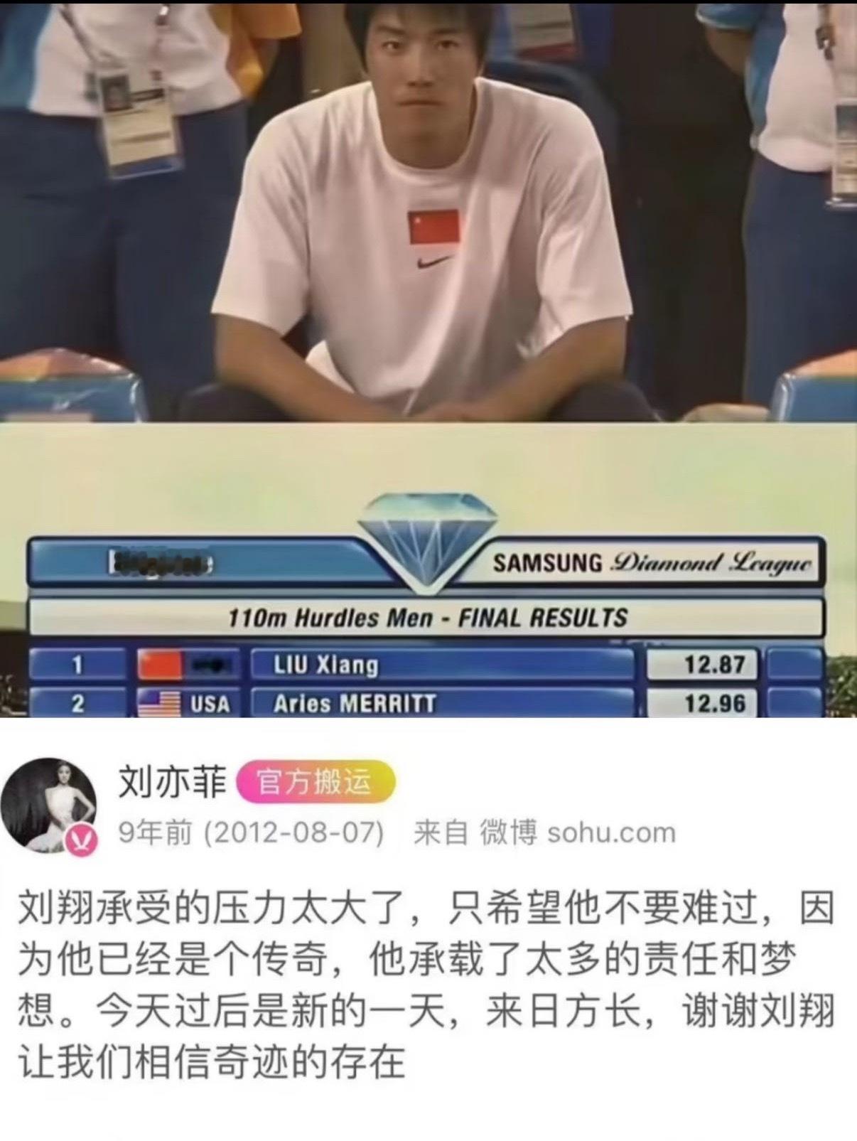 当年铺天盖地骂刘翔,刘亦菲站出来发声!她真的很清醒又真诚。
